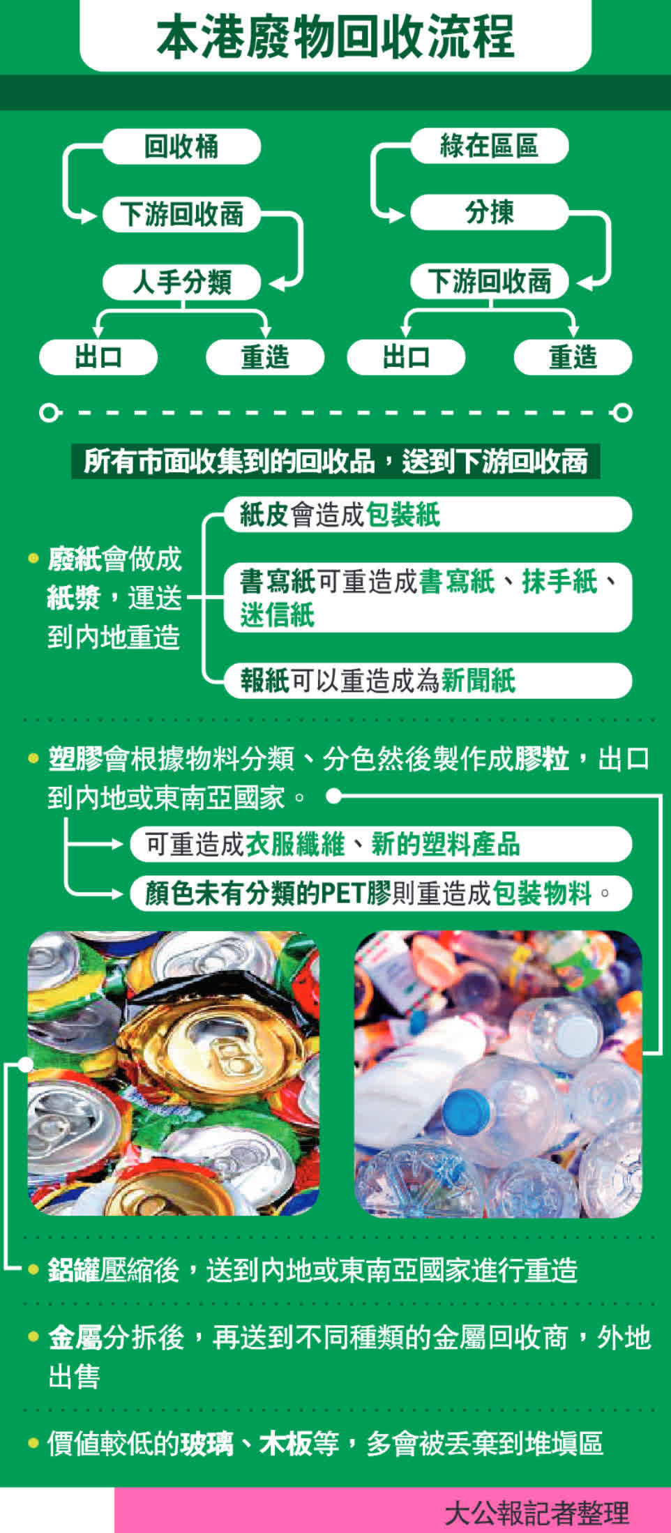 經營廢塑膠回收商向大公報記者透露,回收業正面臨空間不足、出口成本趨升等種種營運問題,他認為想要做好回收,回收品本地重造是出路。