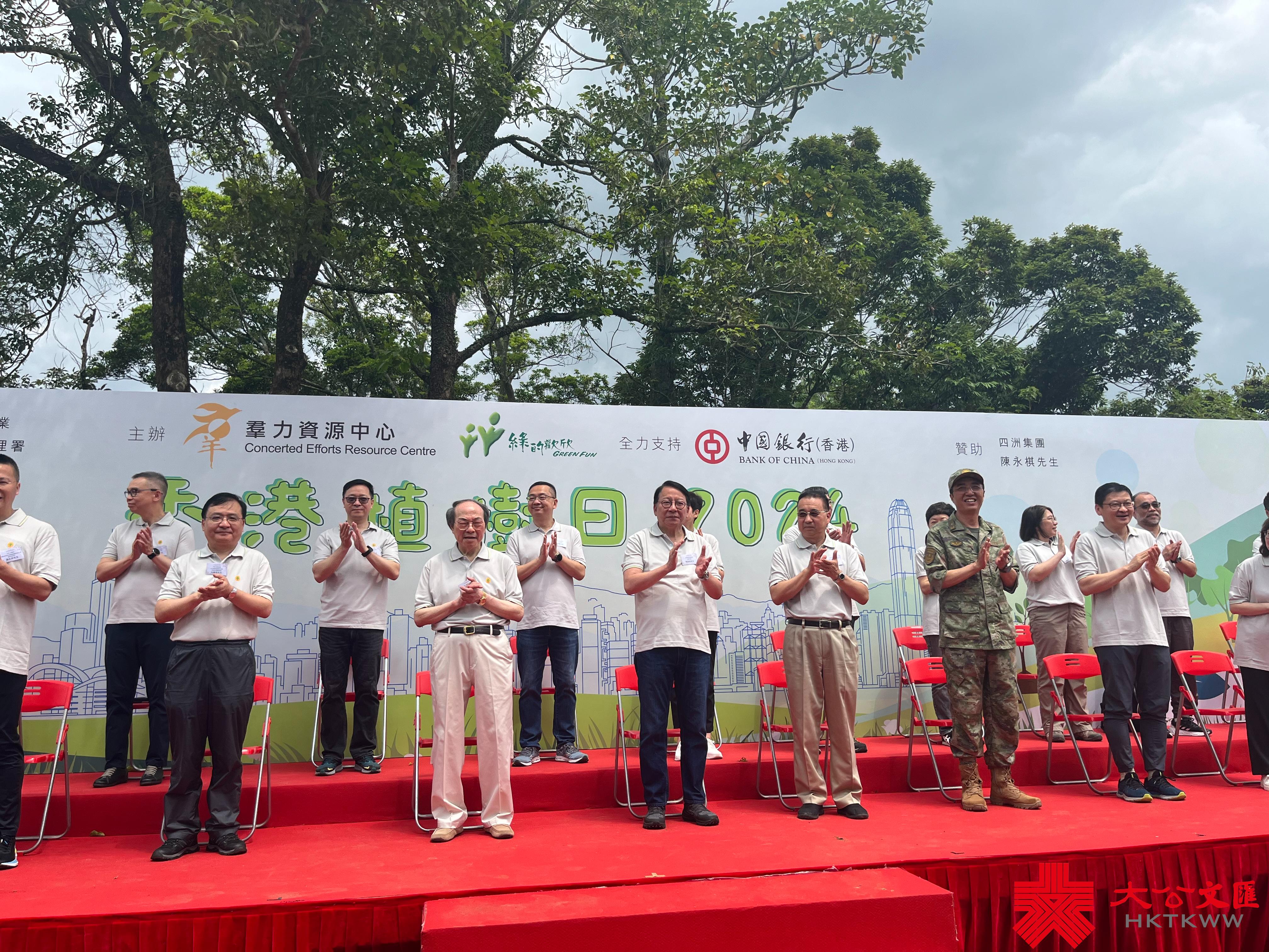 (大公文匯全媒體 記者 鄭泳君)「香港植樹日2024」今日(20日)於西貢蕉坑舉行,並邀得香港特別行政區政務司司長陳國基、中央人民政府駐香港特別行政區聯絡辦公室副主任劉光源、中華人民共和國外交部駐香港特別行政區特派員公署副特派員方建明、中國人民解放軍駐港部隊副司令員鄭國躍少將擔任主禮嘉賓。