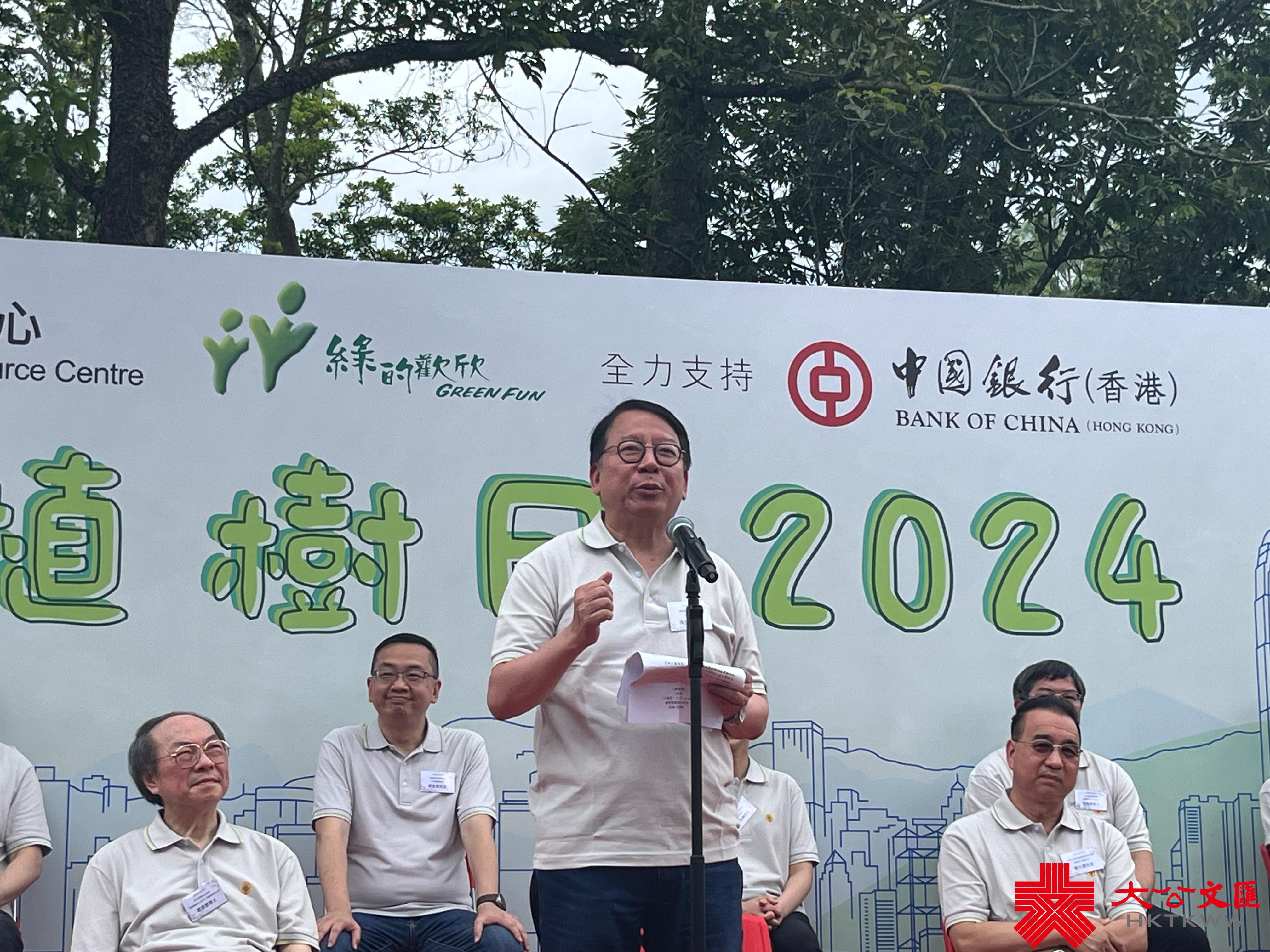 陳國基藉今日植樹活動類比香港發展方向,他形容「根深才能葉茂」,要香港長治久安,就要先將繁榮穩定的根扎得更深。有了更安全的環境才能集中精力發展經濟、改善民生。他期待與社會各界繼續共同努力,建設香港成為更有活力、更具競爭力的綠色城市。