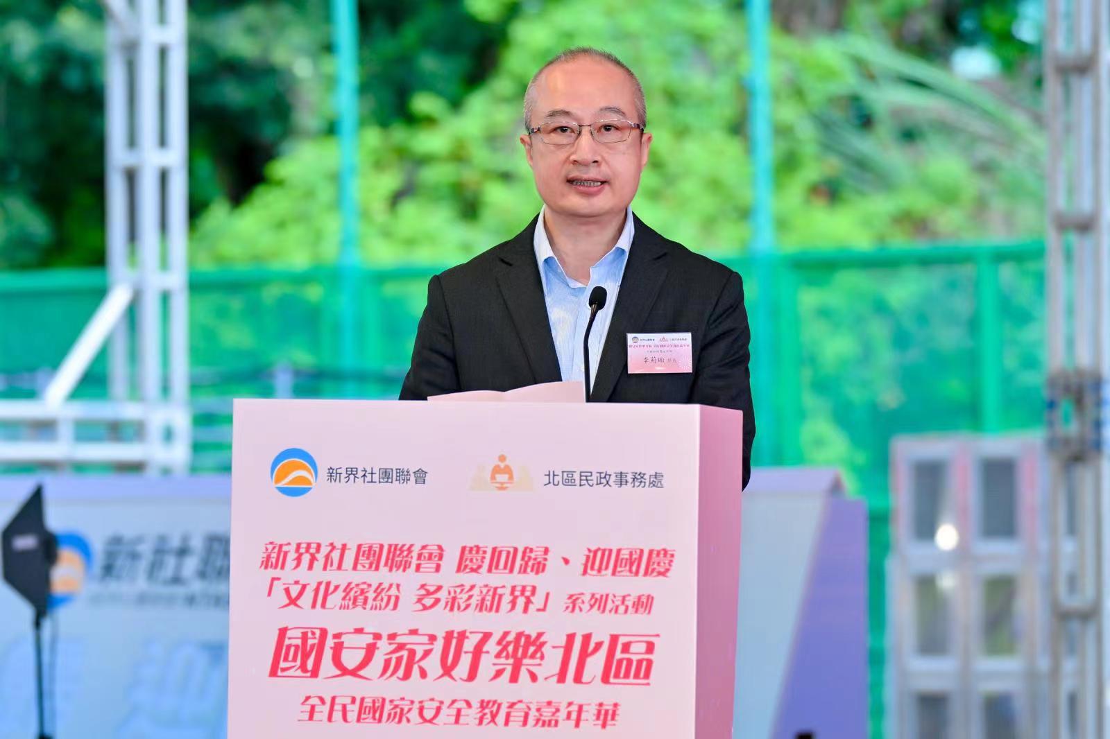 大公文匯全媒體報道,新界社團聯會及北區民政事務處一連兩日(20日及21日)於粉嶺遊樂場主辦「國安家好樂北區」全民國家安全教育嘉年華,作為新社聯慶回歸、迎國慶「文化繽紛 多彩新界」系列活動的首場,希望在豐富市民生活的同時,營造共同維護國家安全的濃厚氛圍,提高市民的國安意識,既呈現豐富多彩的傳統文化和北區民俗特色,又向市民展示了總體國家安全觀及《維護國家安全條例》內容等資訊。