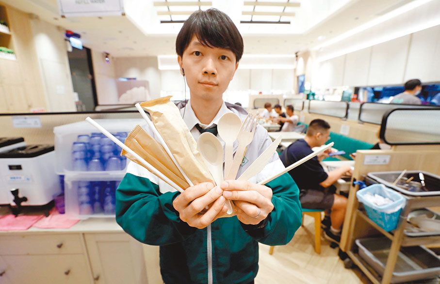 他表示,挑選新餐具時,公司盡量在降低成本和保證質量上取得平衡,「會以保證質量為先,這套新餐具經過耐熱程度、韌度等測試後才選擇,木質刀叉和木質匙羹和紙質吸管,基本能夠應付所需,但紙質匙羹在耐熱方面,還是無法與塑膠相比。」