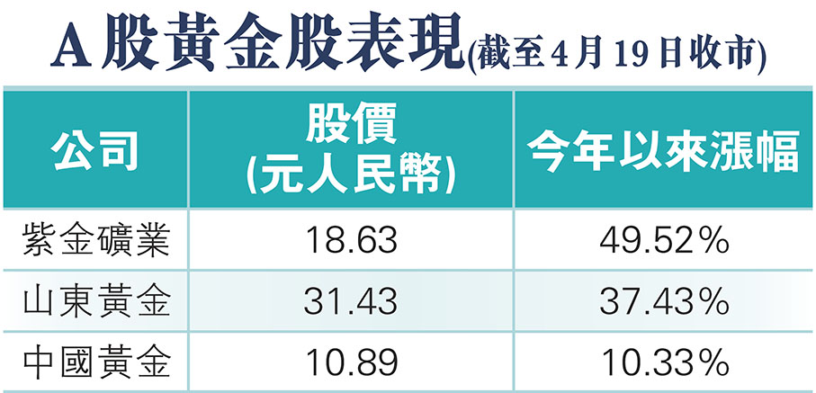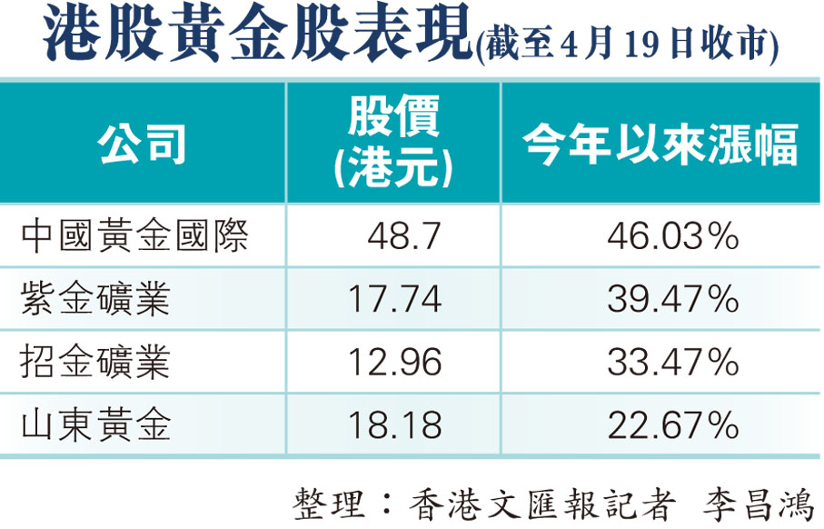 黃金股受捧 紫金礦業今年飆近五成