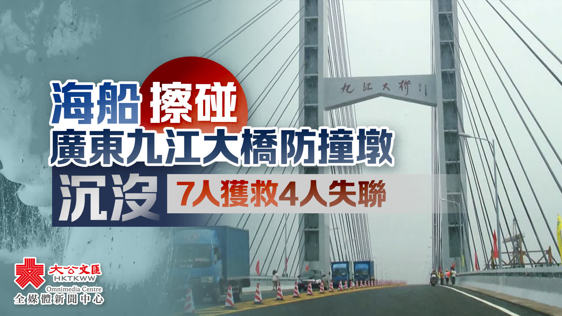 據「佛山發布」微信公眾號消息,4月22日晚,一艘海船擦碰G240國道九江大橋防撞墩,在擔桿洲尾水域搶灘不成功沉沒,船上共有11名船員,其中7人獲救,4人失聯正在搜救,事故原因正在調查中。
