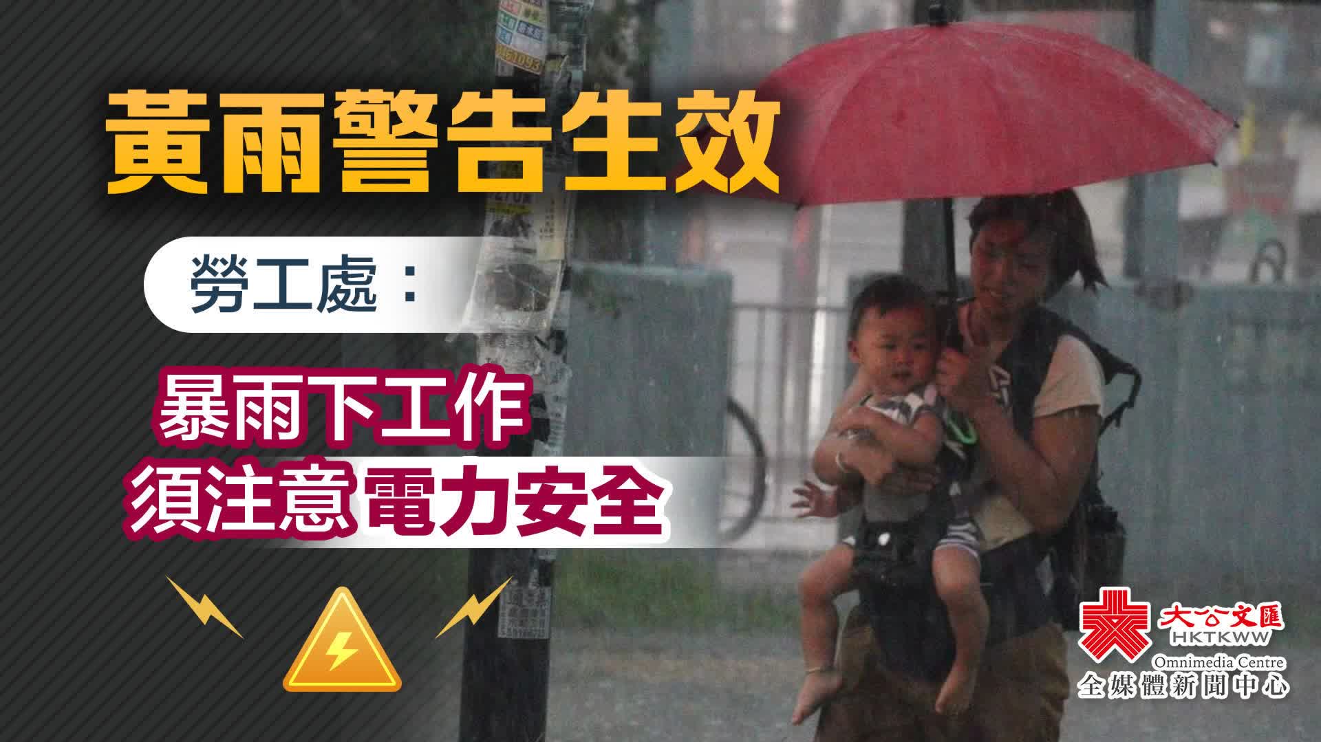 大公文匯全媒體報道,鑒於天文台今日(23日)上午8時30分發出黃色暴雨警告信號,勞工處提醒僱主及承建商,當僱員在進行電力工作或處理電力作業裝置時,須採取所需的工作安排及適當安全措施,以保障僱員的工作安全。