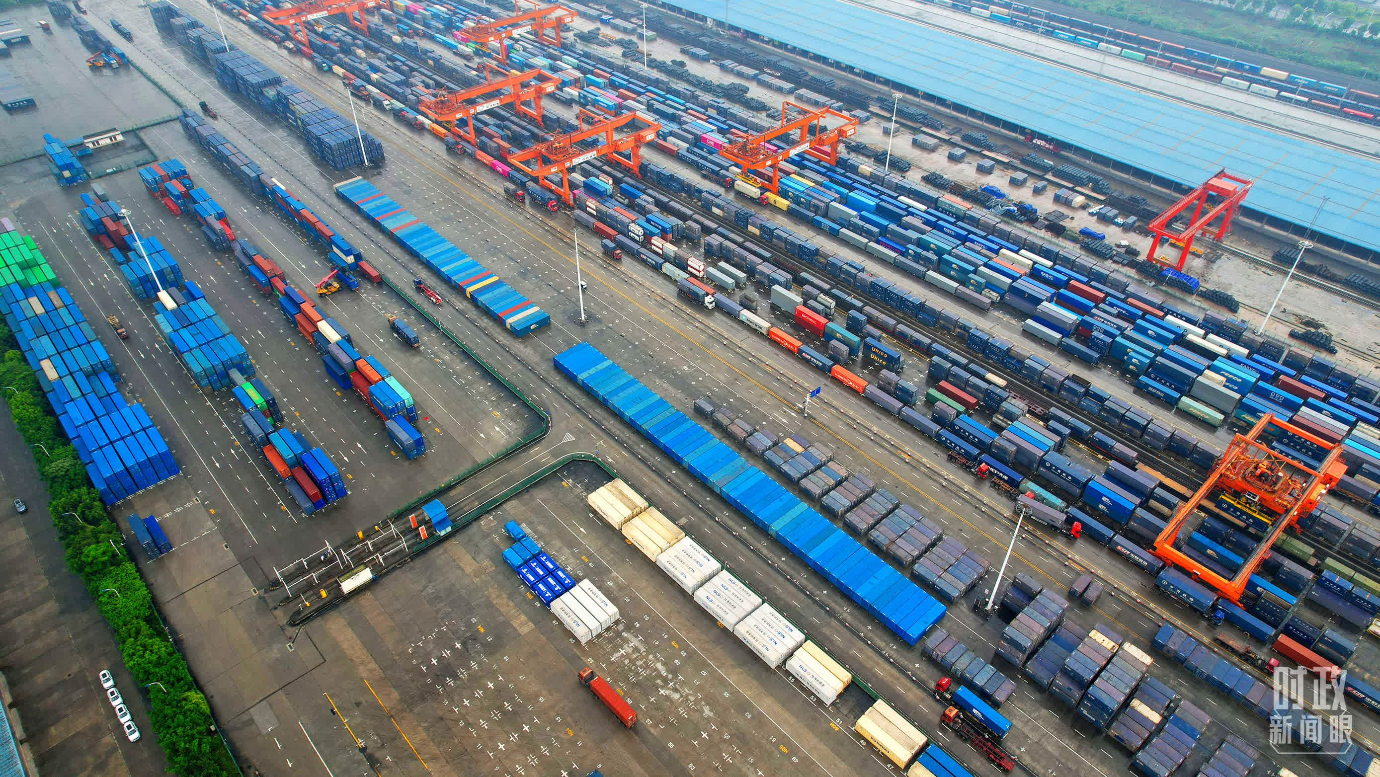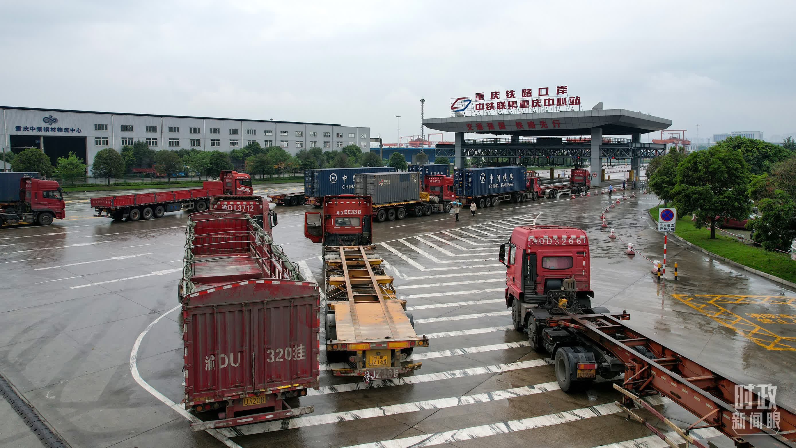 從地理優勢上看,這裏是我國對外開放的重要樞紐。向西開放,中歐班列串聯大通道;向南出海,西部陸海新通道成為新動脈。再加上渝滿俄、渝甬,四個方向的國際班列開行線路62條,輻射112個國家的503個港口。