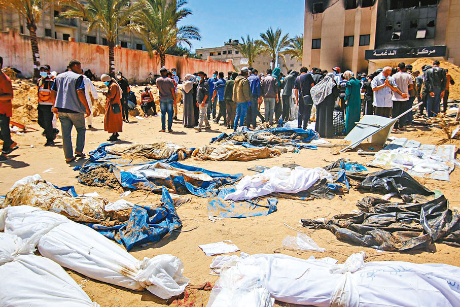 香港文匯報報道,以色列軍隊4月初撤出加沙南部城市汗尤尼斯後,當地民防部門表示,民防人員在市內的納賽爾醫院的亂葬崗內,已發現近300具被以軍殺害並掩埋的屍體,部分屍體手腳被綑綁,懷疑遭處決。