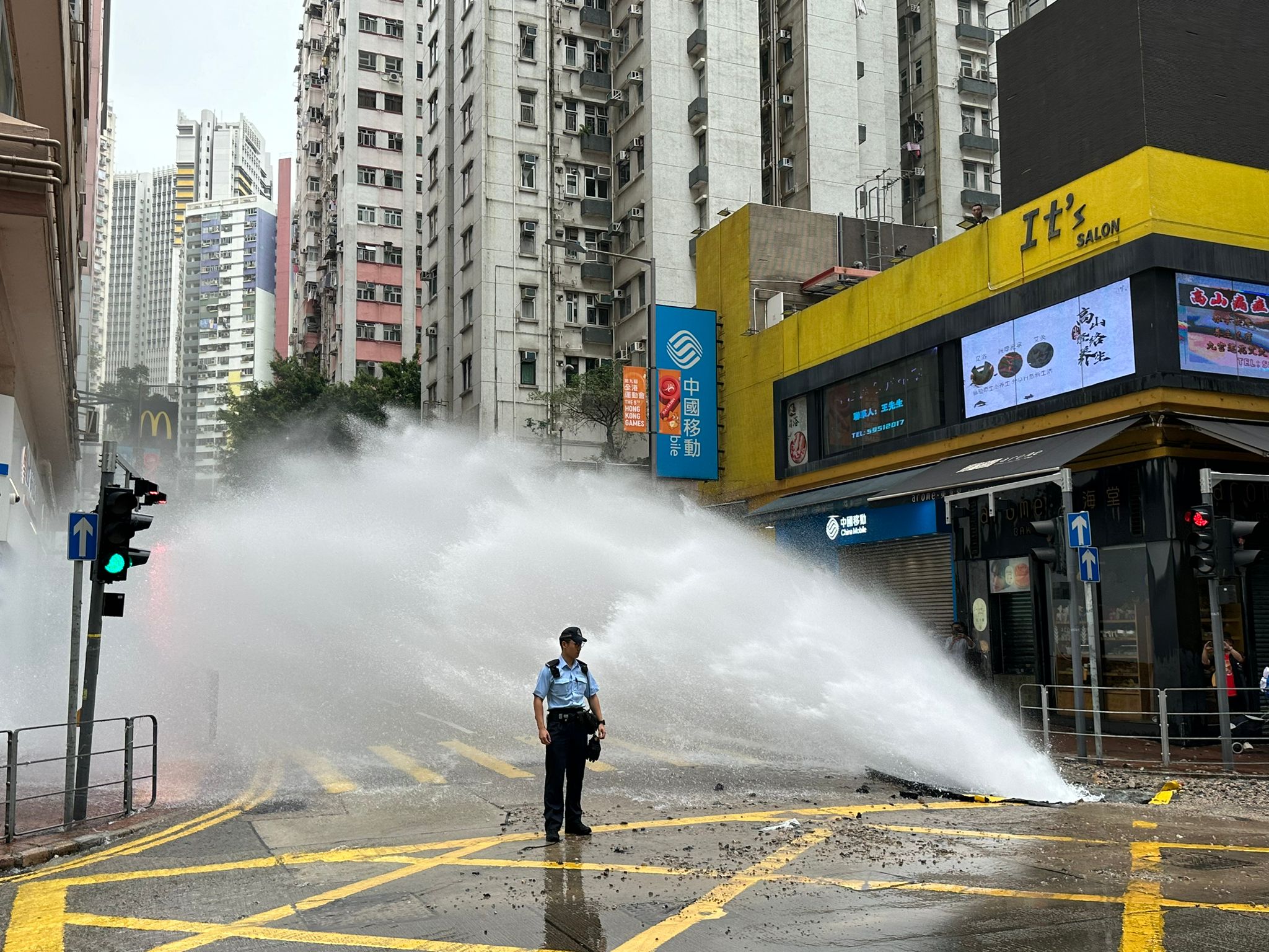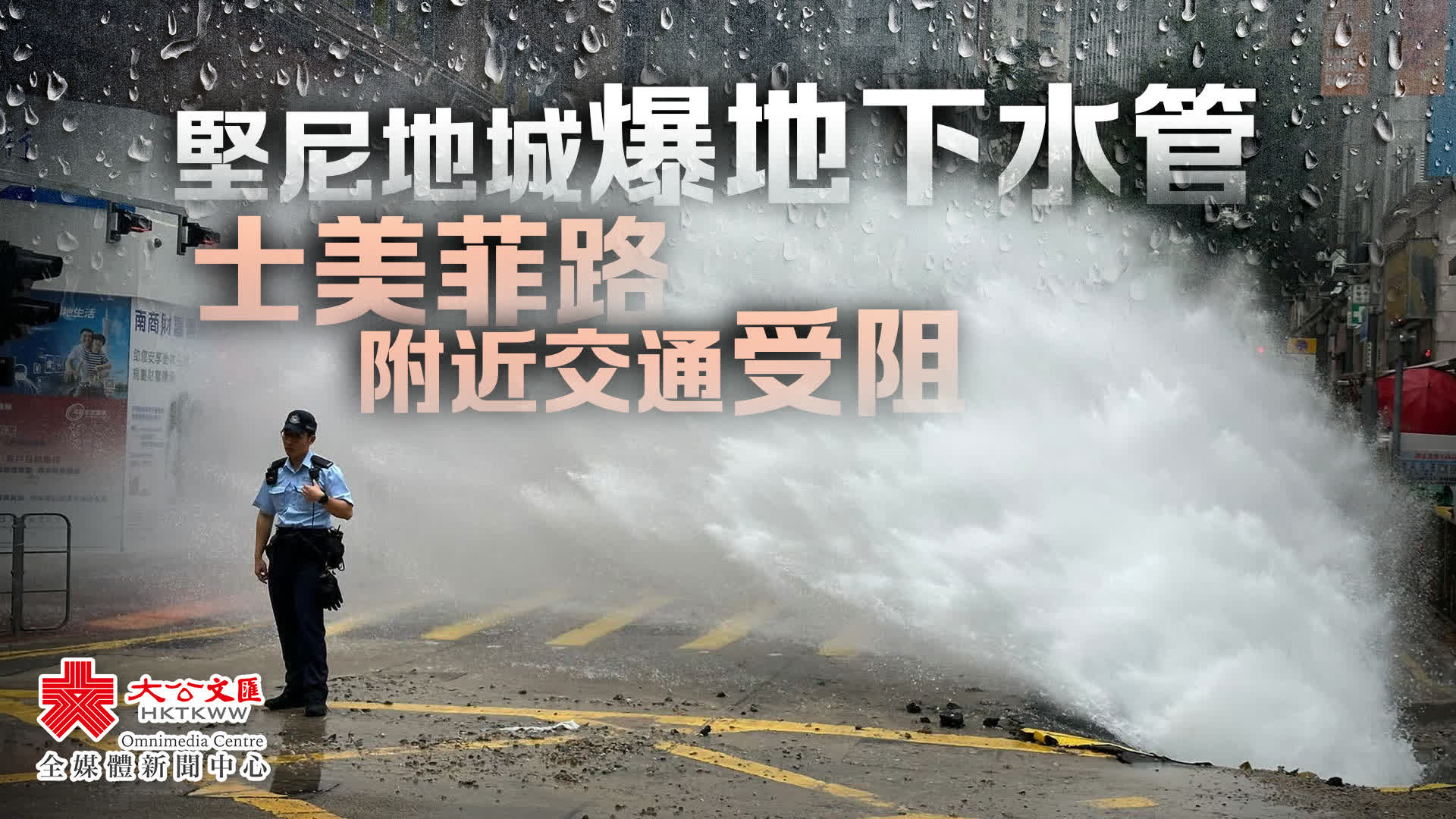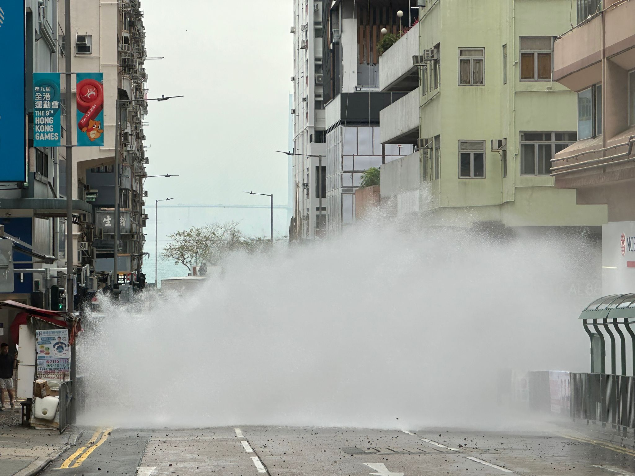大公文匯全媒體報道,西環堅尼地城士美菲路附近今日(24日)下午爆地下水管,從讀者供圖可見,噴出約三至四米高水柱,猶如噴泉。警方接獲多名市民報案後趕往現場,其間通知水務署派員善後。