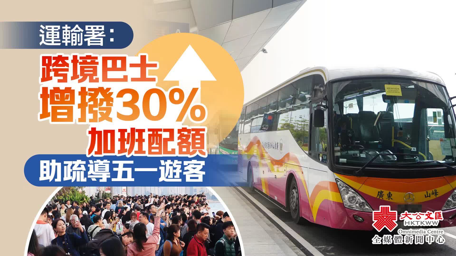 當局指,運輸署已與相關內地單位協調,向跨境巴士服務營辦商增發140個深圳灣口岸及100個香園圍管制站節日特別加班配額,讓有關跨境巴士班次由平日的每天合共1498班,增加超過30%至每天合共1978班。