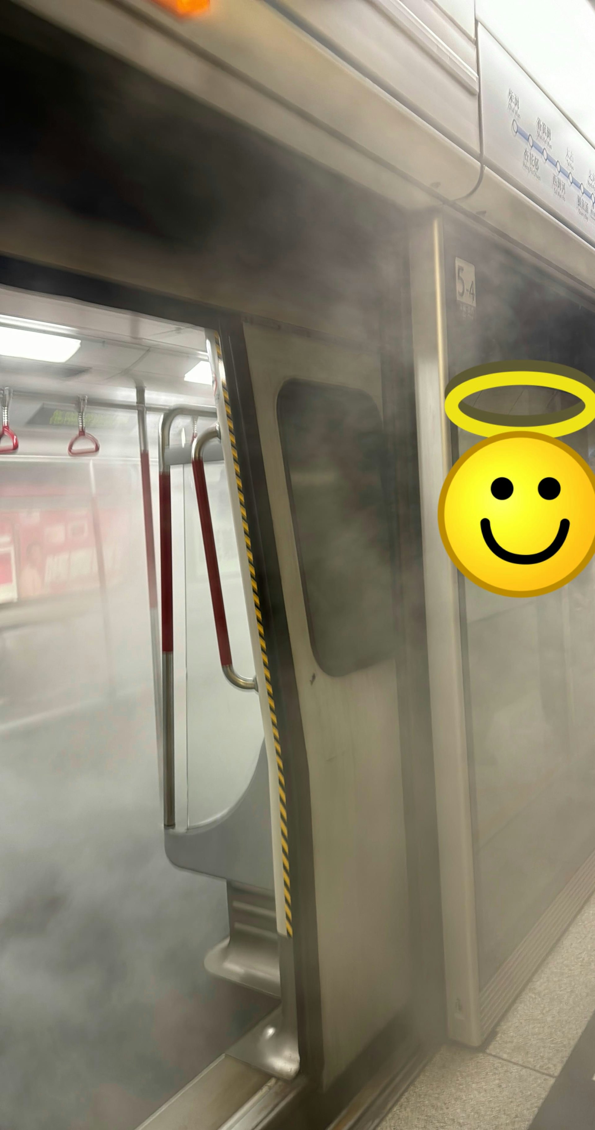 港鐵又表示,若乘客遇到類似情況,可使用車廂內的緊急通話器通知車長,車廂內亦設有滅火筒、緊急通風窗等安全設備供緊急之用。