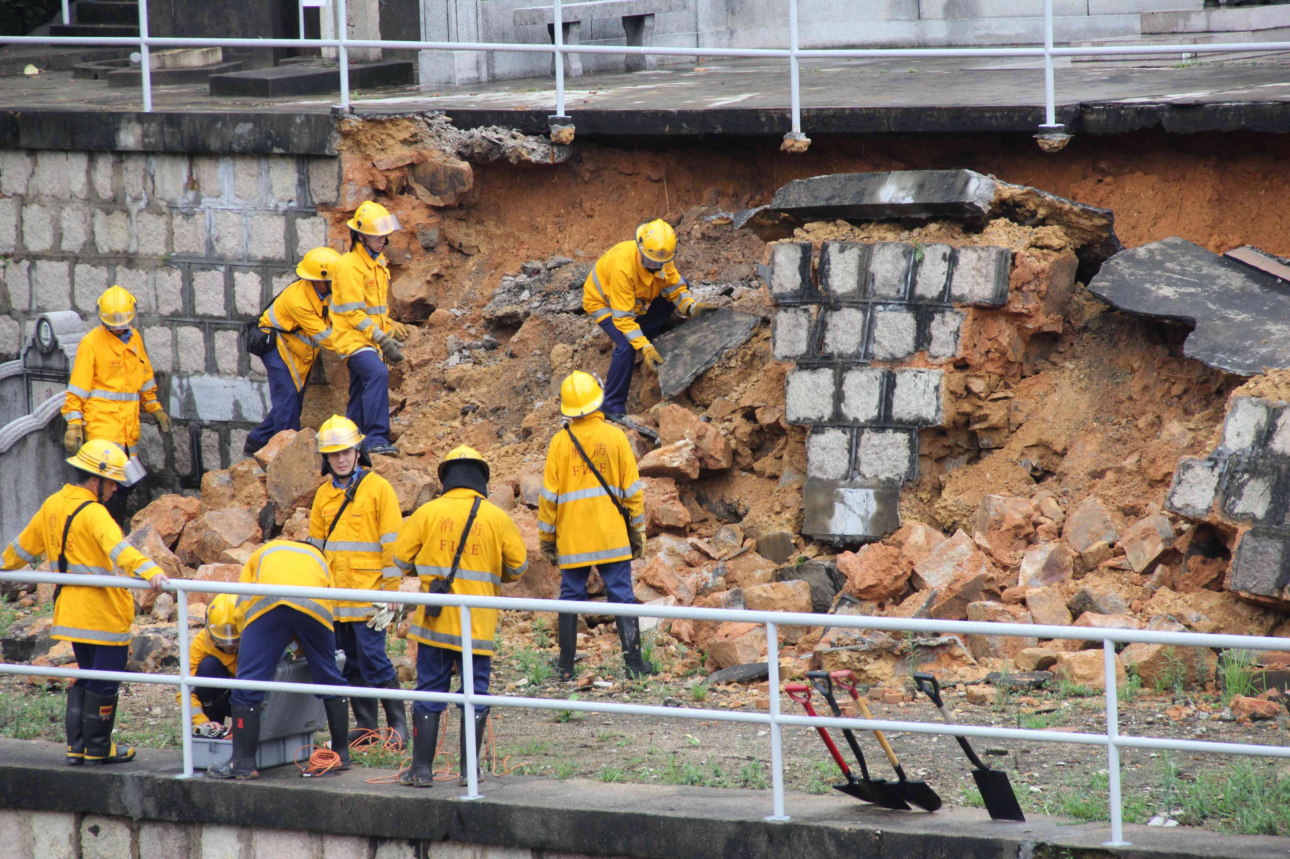警方中午12時許接報,指墳場近第8段位置,有一幅面積約10米乘20米的護土牆倒塌,消防到場,並派出災難應變救援隊搜索,確認無人被困。受影響範圍已被圍封。