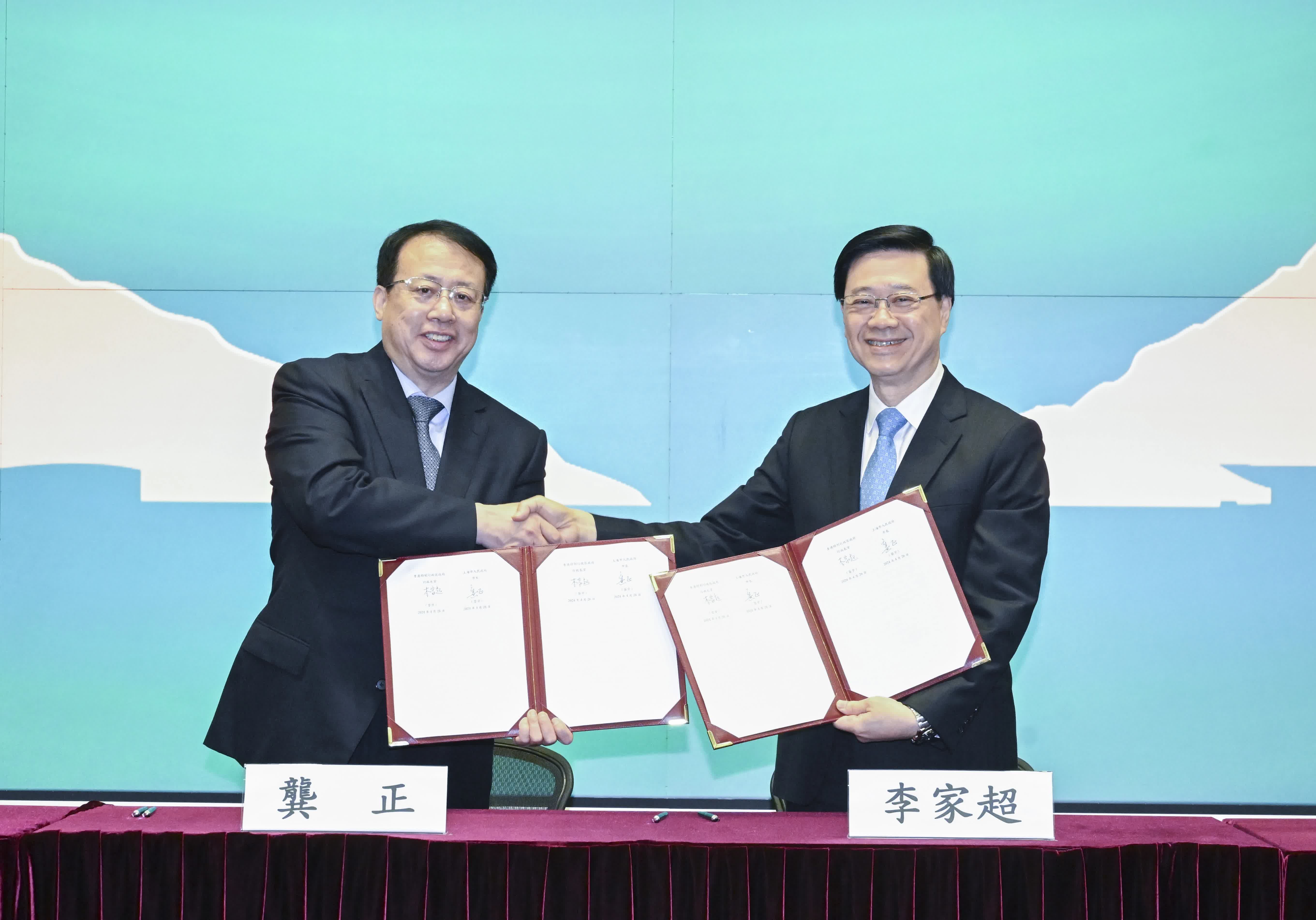 (大公文匯網 記者 張帆)據「上海發布」消息,滬港合作會議第六次會議26日在香港舉行。上海市委副書記、市長龔正,香港特別行政區行政長官李家超分別致辭。龔正與李家超簽署《滬港合作會議第六次會議備忘錄》,並共同見證滬港相關部門簽署法律服務、商貿、金融、科技、城市發展、文化等領域共20份合作協定。