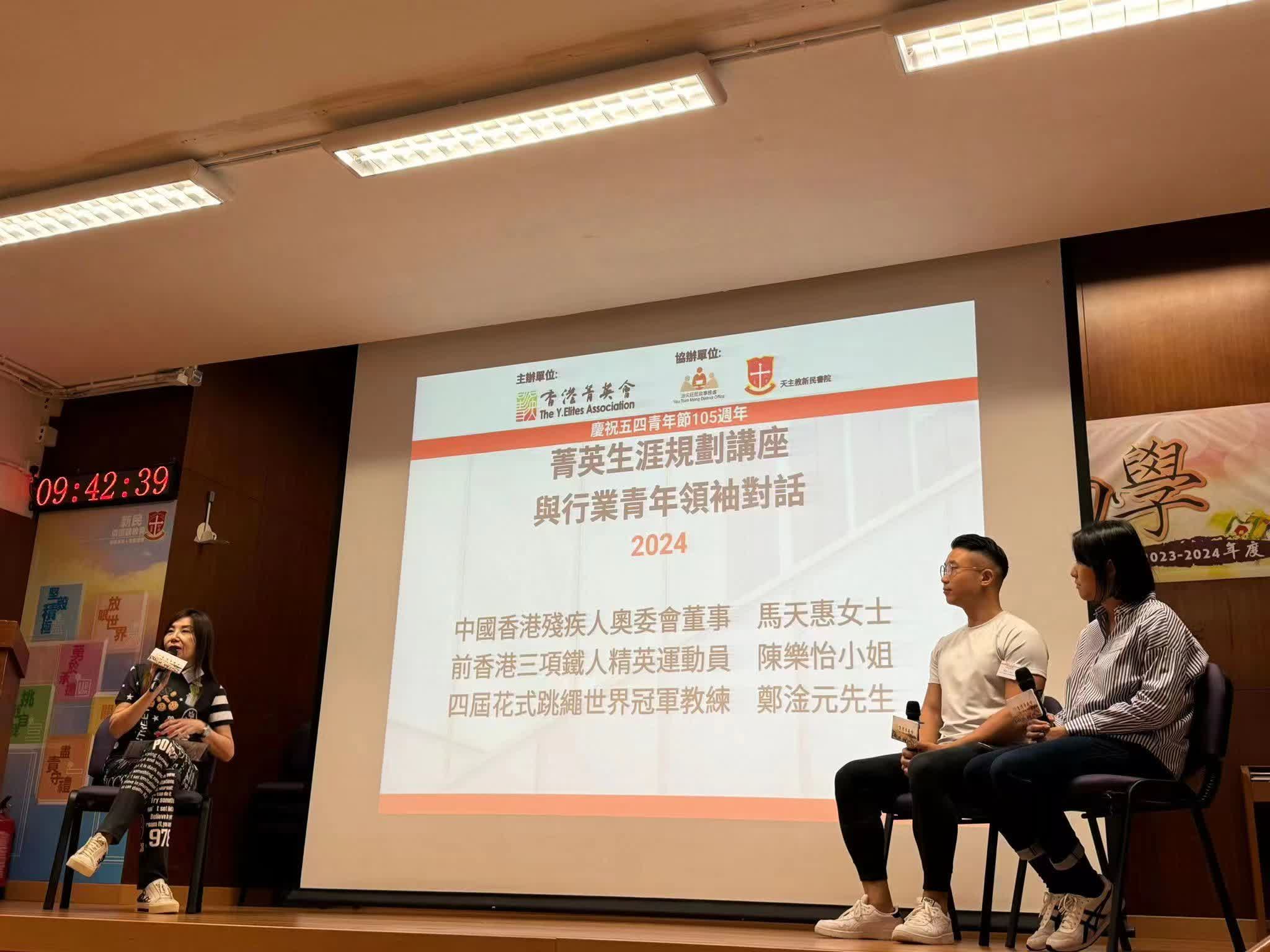 講座邀請了香港菁英會主席林智彬,油尖旺民政事務專員餘健強蒞臨致詞,並由中國香港殘疾人奧委會董事馬天惠、前香港三項鐵人精英運動員陳樂怡和四屆花式跳繩世界冠軍教練鄭淦元與同學們分享經歷。同學們隨後再分組與各行業青年領袖進行交流。