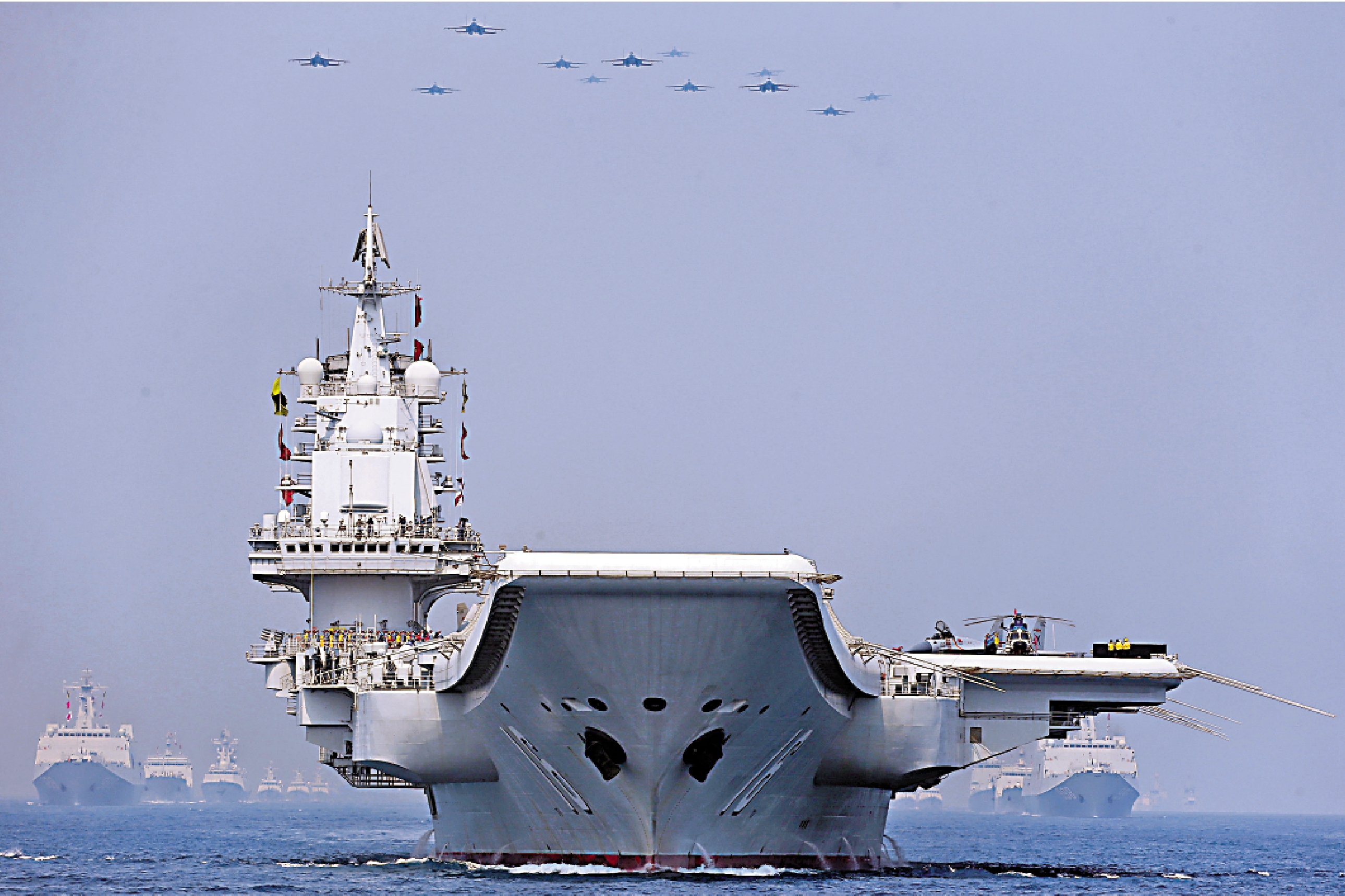 在中防區,由「帶刀侍衛」驅逐艦和「貼身保鏢」護衛艦,聯手為航母提供防禦保障。055型和052D型導彈驅逐艦,是具備防空、反導、反艦、反潛、對陸攻擊能力的多面手,承擔摧毀一切威脅的使命。空中的戰機、導彈,水面的艦船,水下的魚雷、潛艇,海岸的炮位、堡壘,都在驅逐艦攻擊對象之列。冷熱共架導彈垂直發射系統,可發射射程約300公里的海紅旗-9B防空導彈,為航母撐起全方位的空中保護傘。