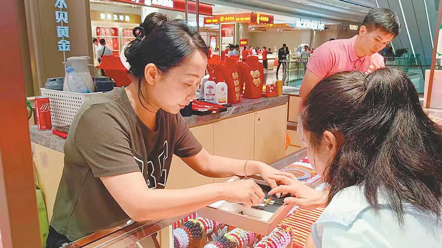 (大公報記者 毛麗娟)儘管春節過後黃金價格持續高企,然而消費者買金熱情未有減退,黃金珠寶品牌振金行負責人透露,因為有春節旺銷因素、金價不斷走高等熱點刺激,與去年四季度相比,今年一季度該公司的黃金飾品銷量提升超過20%。近日金價屢破高位,雖然仍有不少買家繼續吸金,但也意識到部分消費者買金的熱情開始趨於理性,有投資者出貨套現,也有部分持貨者將手持的舊金器出售轉換新品,「以舊換新」業務火熱。