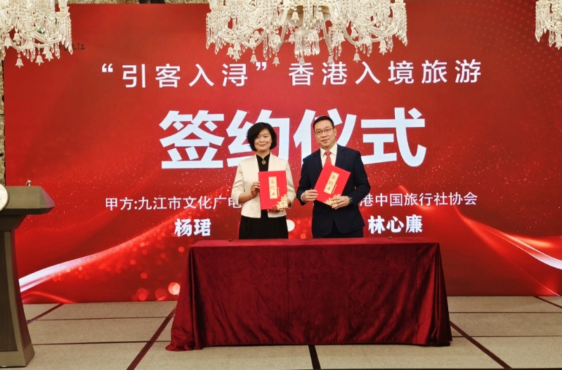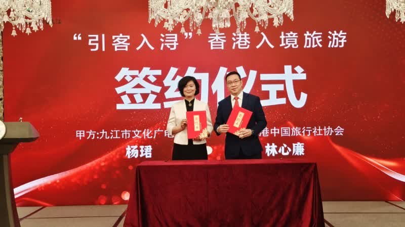 推介會上,九江市發布香港—九江精品旅遊線路,誠摯邀請香港遊客到九江感受山、江、湖、城的絕美風光。隨後,廬山、廬山西海、武寧縣分別開展了精彩推介,通過圖片、視頻等形式將當地旅遊資源充分呈現在大家眼前,帶領嘉賓現場感受詩意廬山的文脈悠長,體驗廬山西海的詩情畫意,欣賞山水武寧的生態美景。與會嘉賓還共同欣賞了沉浸式情景劇表演《詩畫九江》。活動現場還舉行了「引客入潯」香港入境旅遊合作簽約儀式,九江文旅與香港中國旅遊協會簽署香港入境遊合作協議,為雙方共敘友情、共商合作、共謀發展構建了重要平台。