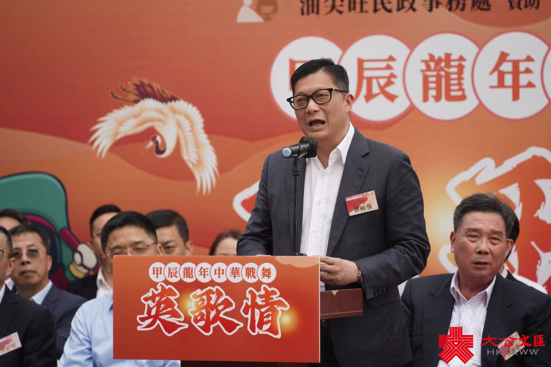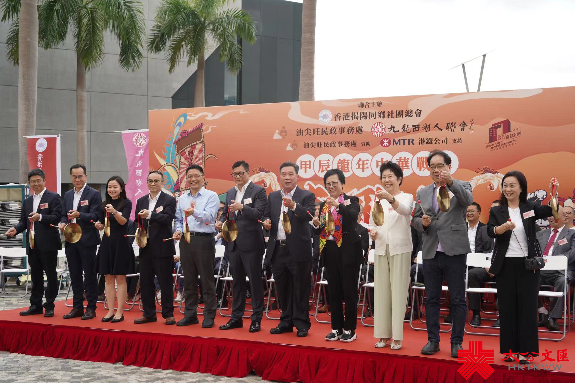 (大公文匯全媒體記者 李九歌)由香港揭陽同鄉社團總會、九龍西潮人聯會、油尖旺民政事務處聯合主辦的「甲辰龍年中華戰舞英歌情」活動於今日(29日)假尖沙咀香港文化中心露天廣場舉行。保安局局長鄧炳強、廣東省揭陽市市委常委、統戰部部長姚麗璇、中央政府駐港聯絡辦九龍工作部副部長郭長勇及多位政府部門人員和立法會議員出席活動,與在場人士一同欣賞傳統正宗普寧泥溝英歌舞表演。