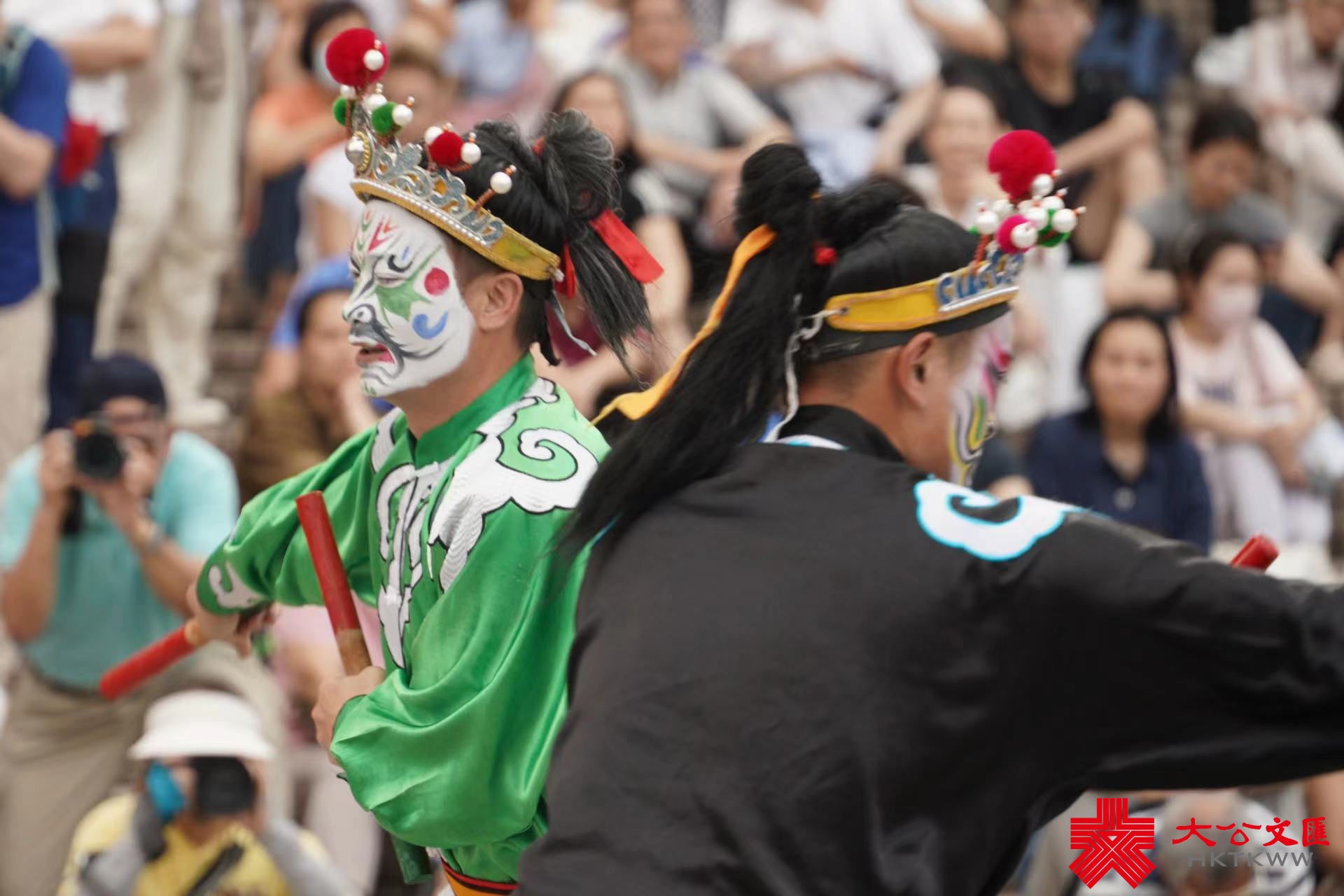 據介紹,英歌舞表演在國家非物質文化遺產名錄中有重要地位。舞者身穿華麗的服飾,伴隨着激昂的音樂,通過獨特的步法、身法、槌法、陣法,展現人物英勇形象,表演剛柔並濟、形式震撼人心,吸引眾多觀眾的目光。