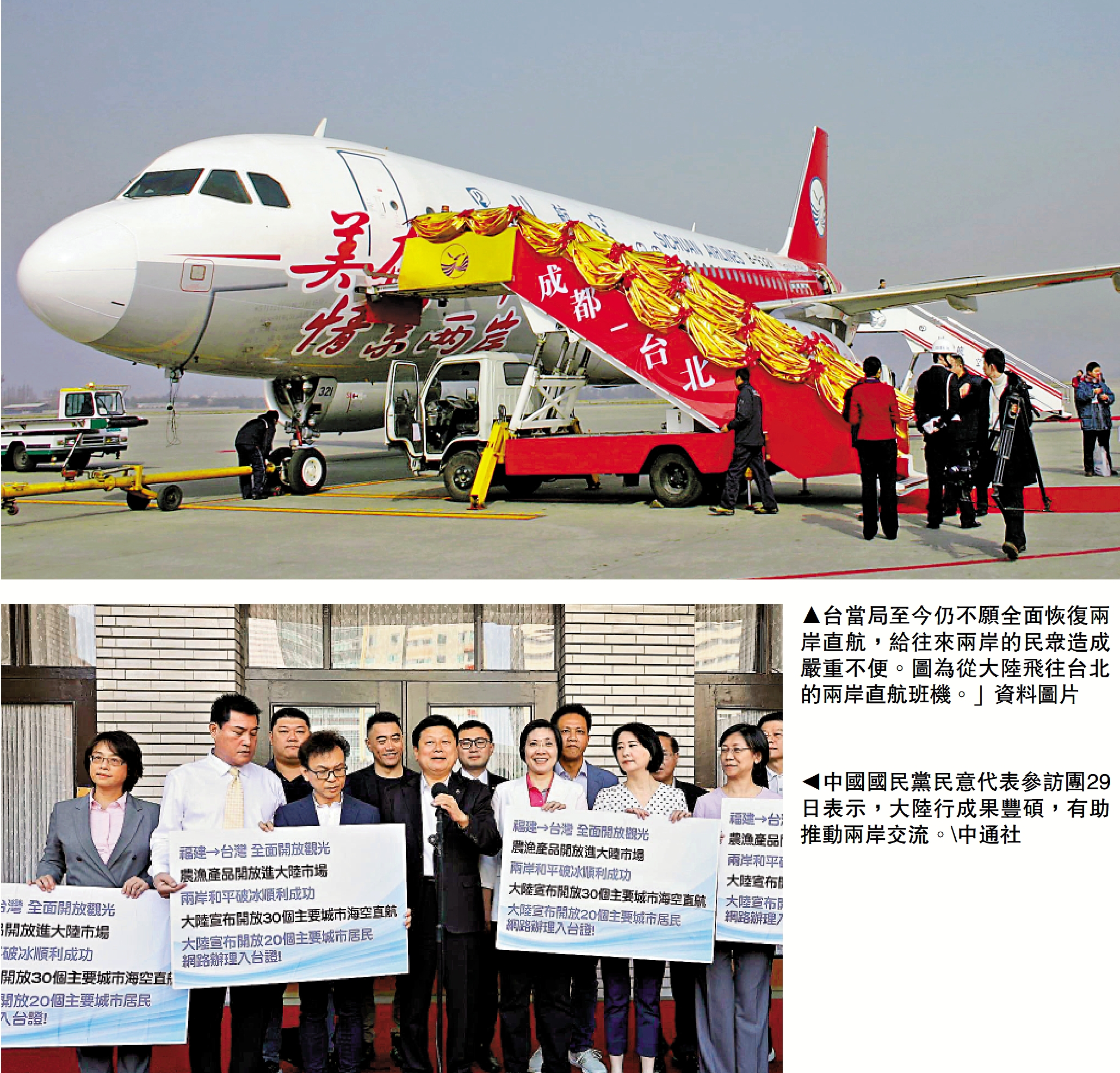 (大公報 記者 蘇榕蓉)「我希望能盡快恢復開通天津等30個大陸航點。台當局應該順應民意,理性衡量台胞的實際需求,這是我們目前在大陸工作生活的百萬同胞最關注、最期待的事情,不要再讓我們歸家的路成了囧途!」南寧師範大學的台灣教授梁洲輔向大公報表示,由於台灣方面還沒有恢復南寧等直航點,如今他每次往返台灣,路程都相當曲折,飽受舟車勞頓之苦。「我和同事們很懷念以前兩岸正常往來的直航航點,希望台當局盡快全面恢復兩岸直航。」