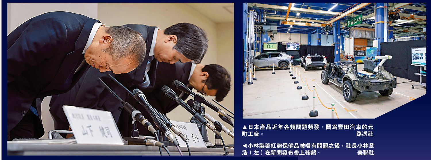 大公報綜合報道,日本企業過去在國際上被貼上所謂「匠人精神」或者「製造精細」等標籤,努力打造優質可靠的形象;在西方輿論場中,日本企業也一度以「管理先進」而存在。然而近年來,多家知名日企先後曝出造假醜聞,無論是豐田汽車子公司大發工業篡改測試數據,還是百年東芝陷入造假賬風波,這類欺騙行為動輒長達數十年。日本製造問題頻發,背後往往是企業管理不善,以信譽和良知為代價。東窗事發之後,涉事企業往往鞠躬道歉了事。一系列造假醜聞促使人們重新審視日本製造業的形象,神話破滅,匠人精神也淪為笑柄。