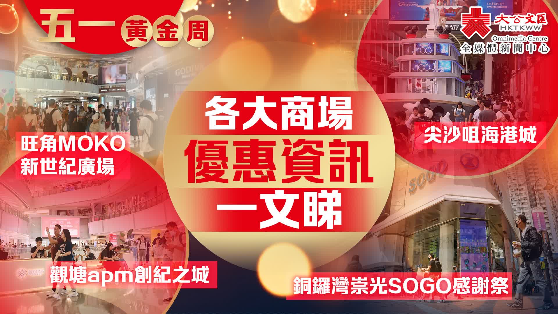 內地「五一」黃金周假期明天開始,本港不少商場均先後推出消費及抽獎等多項優惠,吸引旅客及本地居民消費,以推動本港經濟。有見及此,本文整理了全港各大焦點商場,各式各樣的優惠推廣資訊,讓大家攞盡着數。(註:一切資訊以商場公布為準)