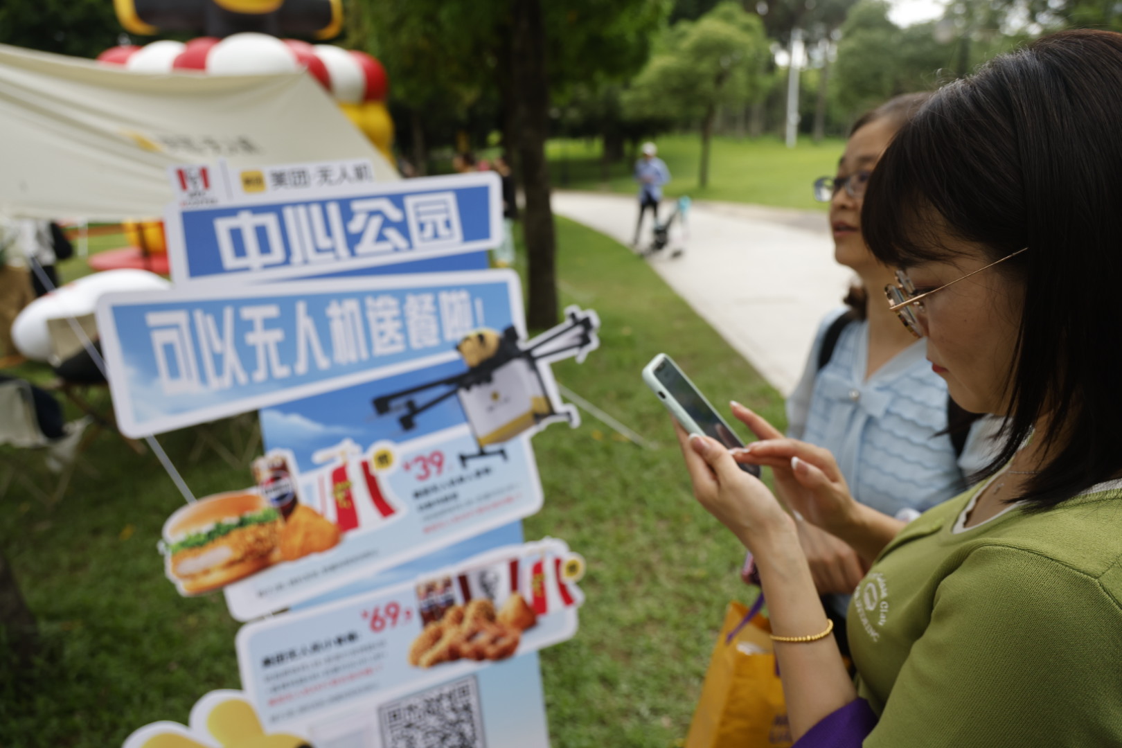 為了讓消費者在遊玩時可以有更好的體驗,美團無人機還將聯合肯德基在公園及肯德基深業上城店舉辦快閃活動,期間不僅設置了大量趣味活動供遊客體驗,現場也會有專業講解讓大家了解無人機配送背後的科技秘密。