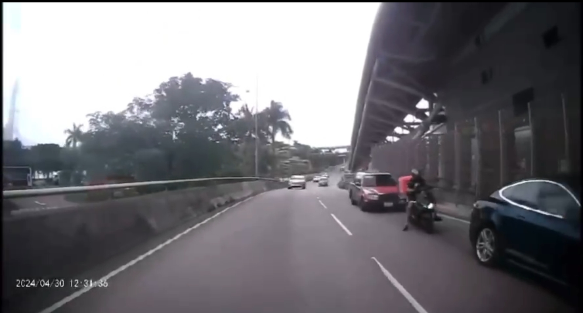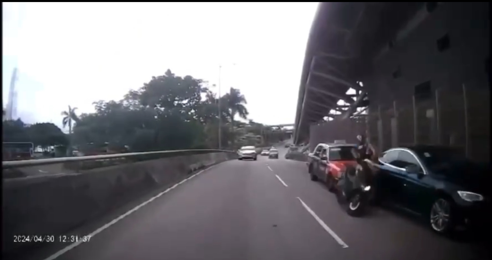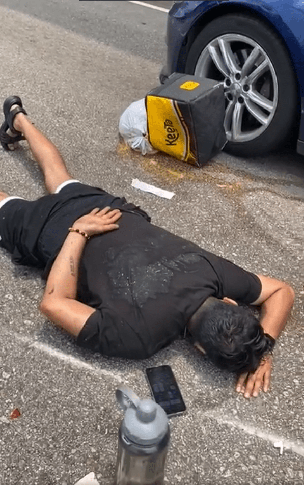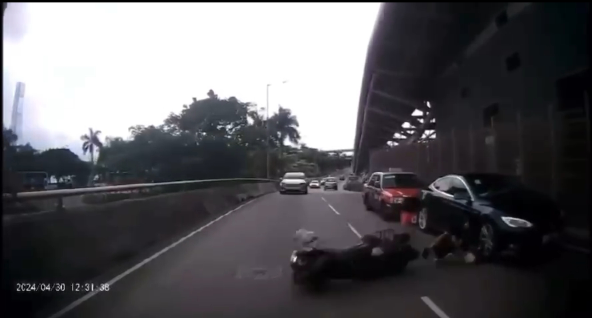 網上流傳車Cam片段,可見一輛載有外賣的電單車,被的士從後撞尾,推前撞向前方私家車。鐵騎士被撞至拋起再墮地。另一段事後片段可見,受傷鐵騎士倒在地上,一隻鞋飛脫,外賣散落一地,有人為其撐傘遮擋。