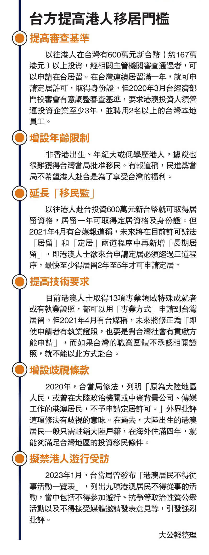 主要是對移居台灣的香港白領專業人士進行審查。