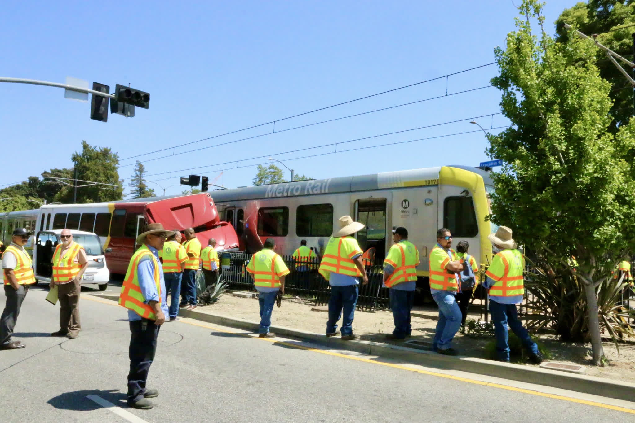 洛杉磯地鐵與校巴相撞。(網絡圖片)