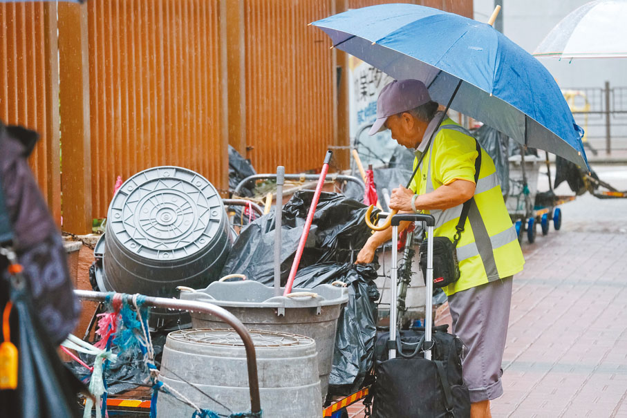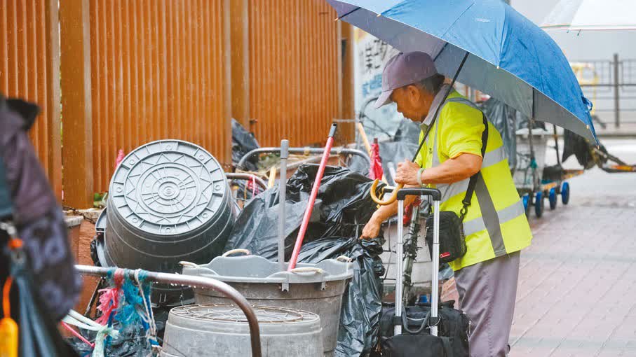 清潔工的「宿命」可能就是身體不同程度的勞損,而「天敵」就是各種極端天氣所帶來的風險。同樣從事清潔工作十幾年的72歲李叔,在勞動節這一天,亦要整天在臭味撲鼻的垃圾房裏團團轉,卻沒有半點怨言,不慣受訪的他腼腆地笑說:「勞動節就是要出來勞動,要不然怎麼叫勞動節?」