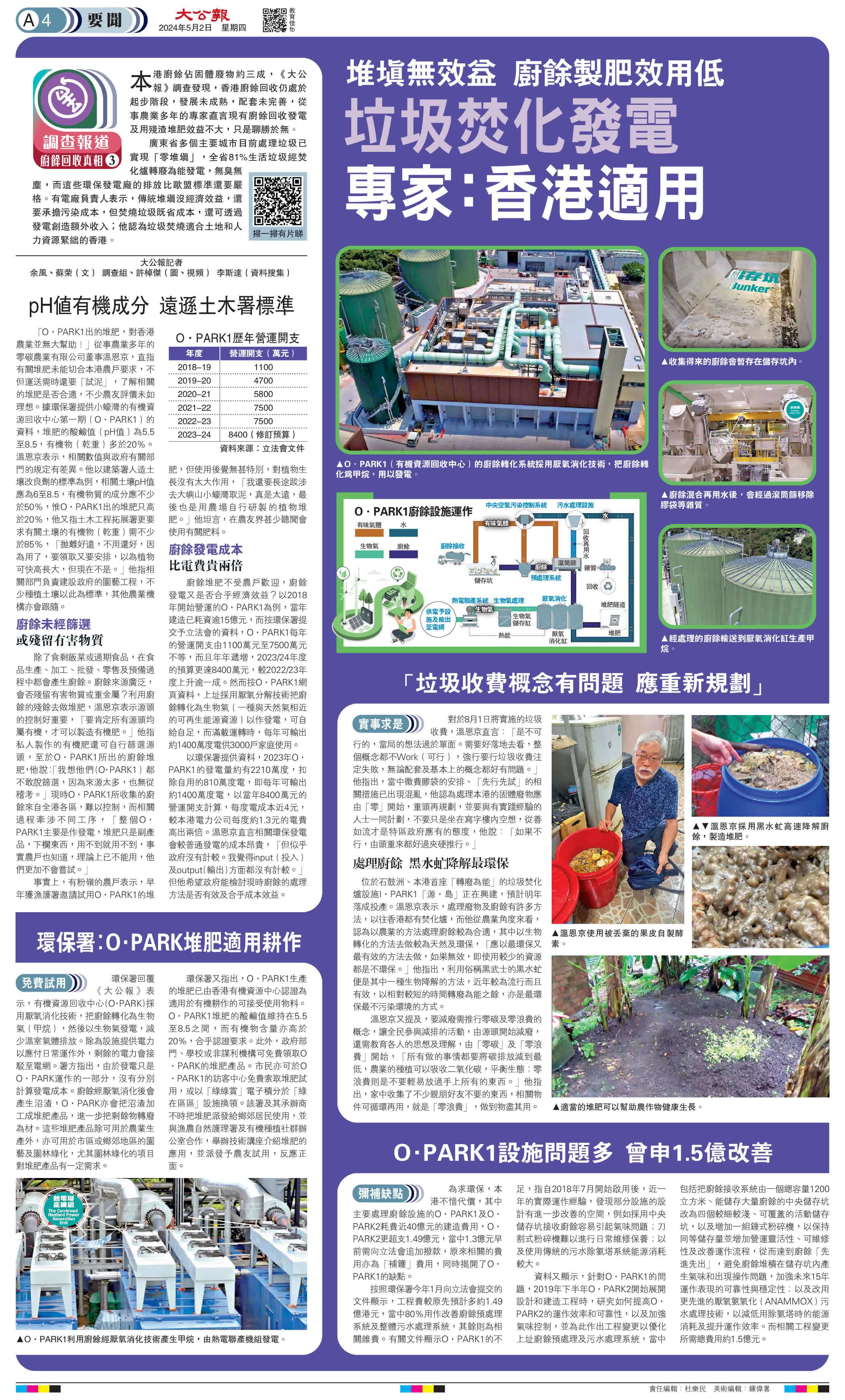 為求環保,本港不惜代價,其中主要處理廚餘設施的O·PARK1及O·PARK2耗費近40億元的建造費用,O·PARK2更超支1.49億元,當中1.3億元早前需向立法會追加撥款,原來相關的費用亦為「補鑊」費用,同時揭開了O·PARK1的缺點。
