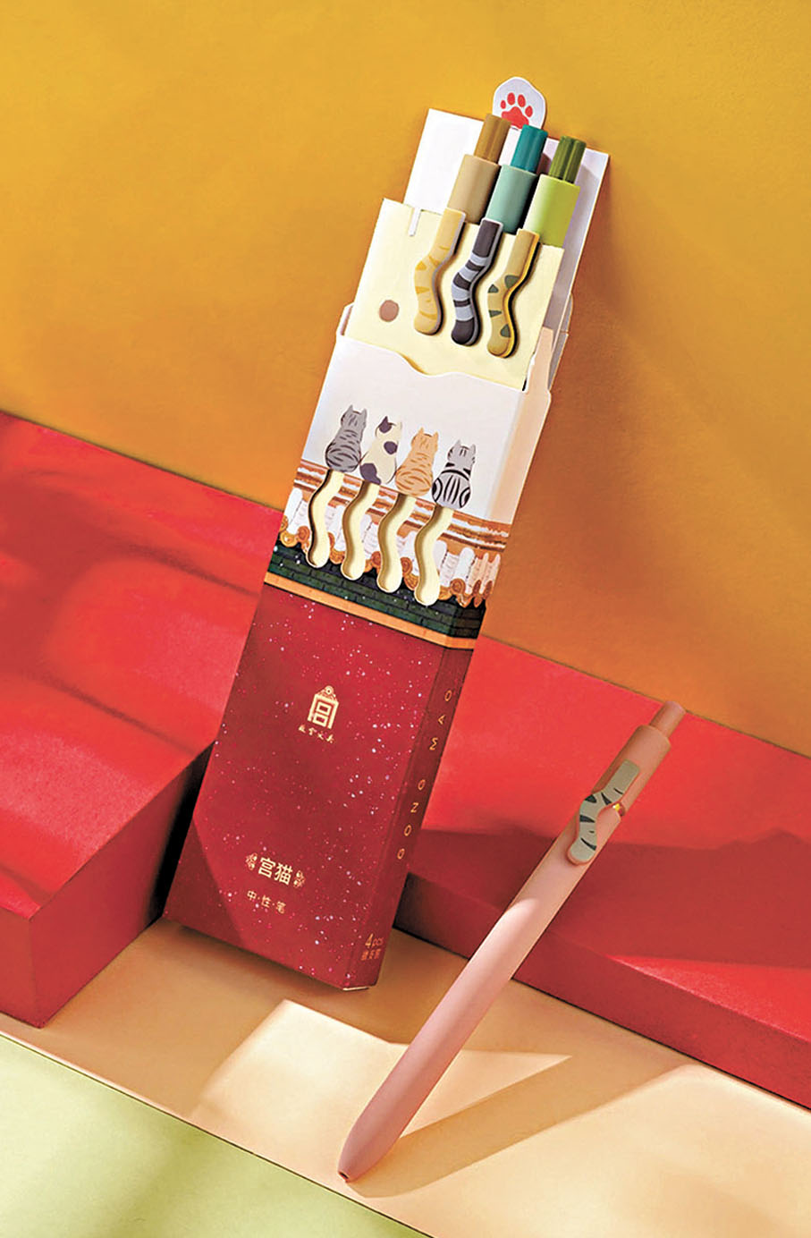 「書桌上的紫禁城—故宮文具」通過對故宮建築、歷史、文化及文物元素的藝術化提取,深度發掘故宮美學及文物知識,設計成創意文具,讓文物重新「活」起來,以全新面貌返回現代生活。2023年8月,故宮文具首次登陸香港,經典款產品例如四合如意中性筆套裝、張燈結綵宮燈書籤、宮貓中性筆套裝等均在港上市,共計超過百款。