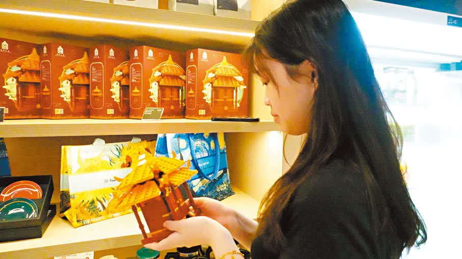 記者觀察到,在某門店現場,文創櫃枱擺在門口最中間的位置,經常有客人進門時被文創產品吸引並駐足觀看,亦有客人主動和工作人員交流。香港城市大學學生Sarah今天來咖啡店溫習課程內容,經過文創櫃枱的時候被紅色的積木收納盒吸引,拿在手上仔細觀看。她說:「這個產品看起來很有趣、很特別、很精緻。」她笑稱,「我以前是有點『崇洋』的人,對外國文化更感興趣,但現在更想了解我們國家的傳統文化。尤其看到這些特別的文創產品後,更想要了解它們背後的歷史原型。」她回憶起自己小時候跟着交流團去北京故宮遊玩的場景,覺得故宮很大、很宏偉,因此在香港看到故宮文創後感覺很有親切感,「我希望未來還有機會再去北京看看故宮,也希望能看看故宮的貓。」