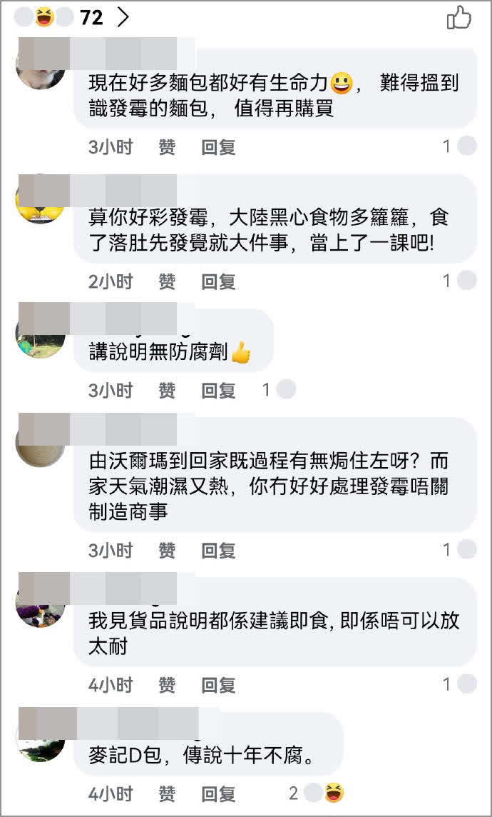 香港市民表示,食材營養成分高,最重要是無防腐劑,難得找到能發霉的麵包,值得再購買。