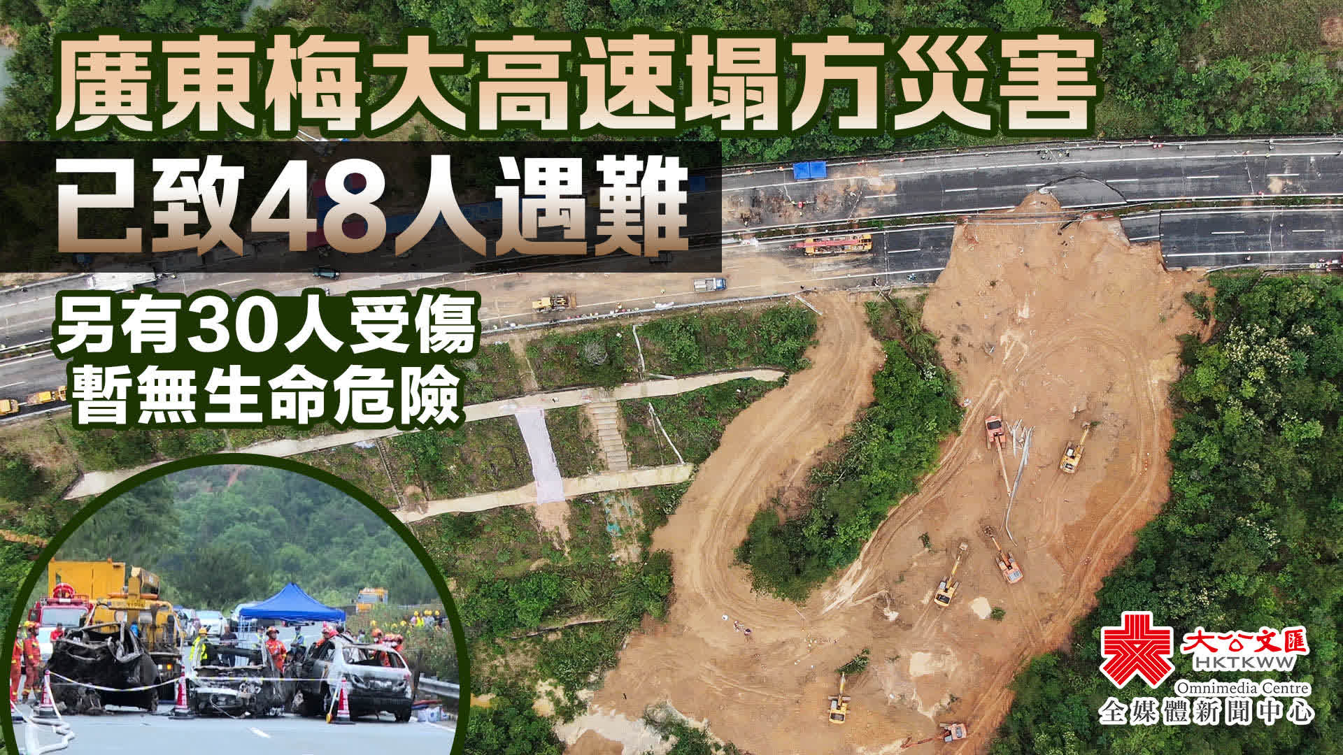 據央視新聞報道,今日(5月2日)下午,廣東梅州市召開新聞發布會,通報梅大高速路面塌方救援救治情況。發布會上,梅州市委書記馬正勇表示,截至5月2日14時,已發現23輛車陷落,48人死亡,另有3人DNA待進一步比對確認,30人受傷,目前無生命危險。經排查,傷亡人員中暫未發現有外籍人士。