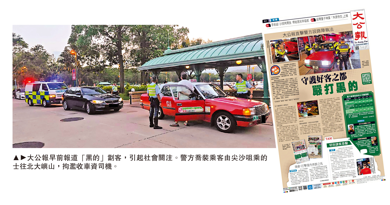 (大公報記者 盛德文)「黑的」多年來拒載、揀客、劏客等劣行,打擊本港旅遊業聲譽,《大公報》去年在聖誕假期揭露港九多處旅遊景點有「黑的」橫行,引起社會強烈反響,警方連續多月展開打擊的士違規行動。昨日,兩名月前被警方「放蛇」拘捕的司機,分別被法庭判處即時入獄、停牌及罰款。