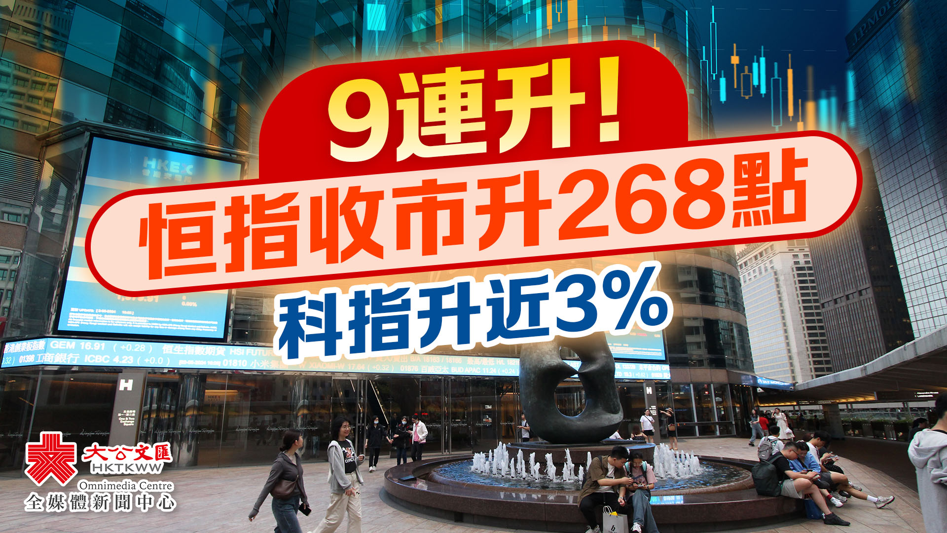 大公文匯全媒體報道,港股延續升勢,再升逾200點。恒指今日(3日)高開336點,早段曾升397點,高見18604點,其後升勢回順,收市報18475點,升268點。恒指9日連升2251點,創2018年以來最長連漲紀錄。科指升2.7%,報3971點。