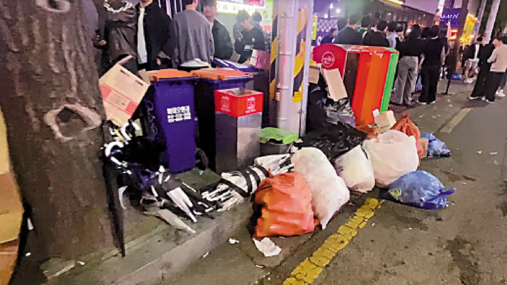 首爾旅遊區明洞、弘大步行區,經常出現一次性塑膠飲品杯一字排開的「奇景」,即使垃圾桶未全爆滿,塑膠飲品杯仍會放置垃圾桶上。韓國留學生聲稱,這是當地人的「潛規則」。
