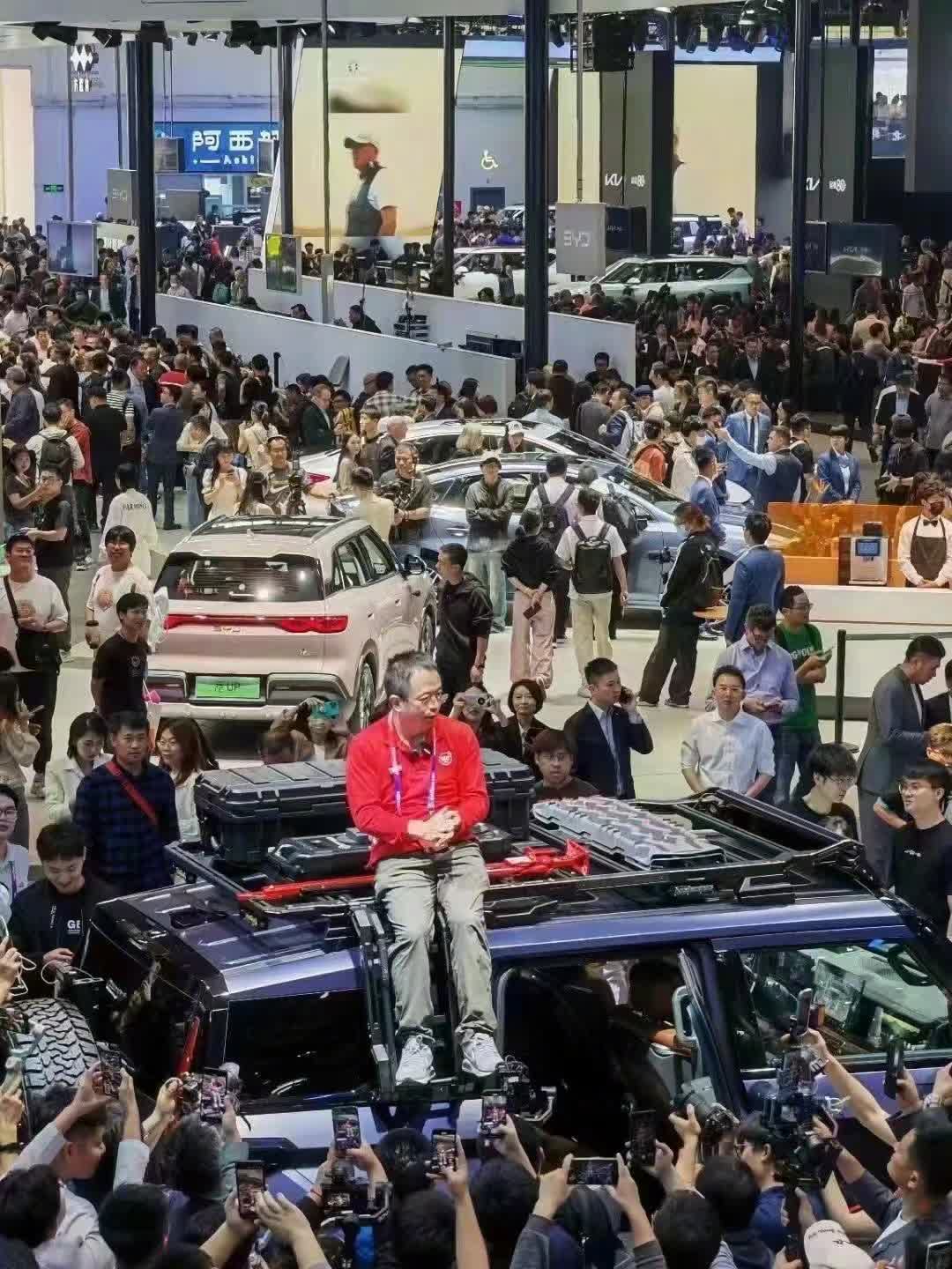 深諳流量密碼的各大車企,第一時間將當家品牌,開到360公司樓下,儼然成了小型車展。4月25日開幕的北京國際車展上,周鴻禕坐到了國產新能源汽車車頂,成為最搶眼的「車模」。