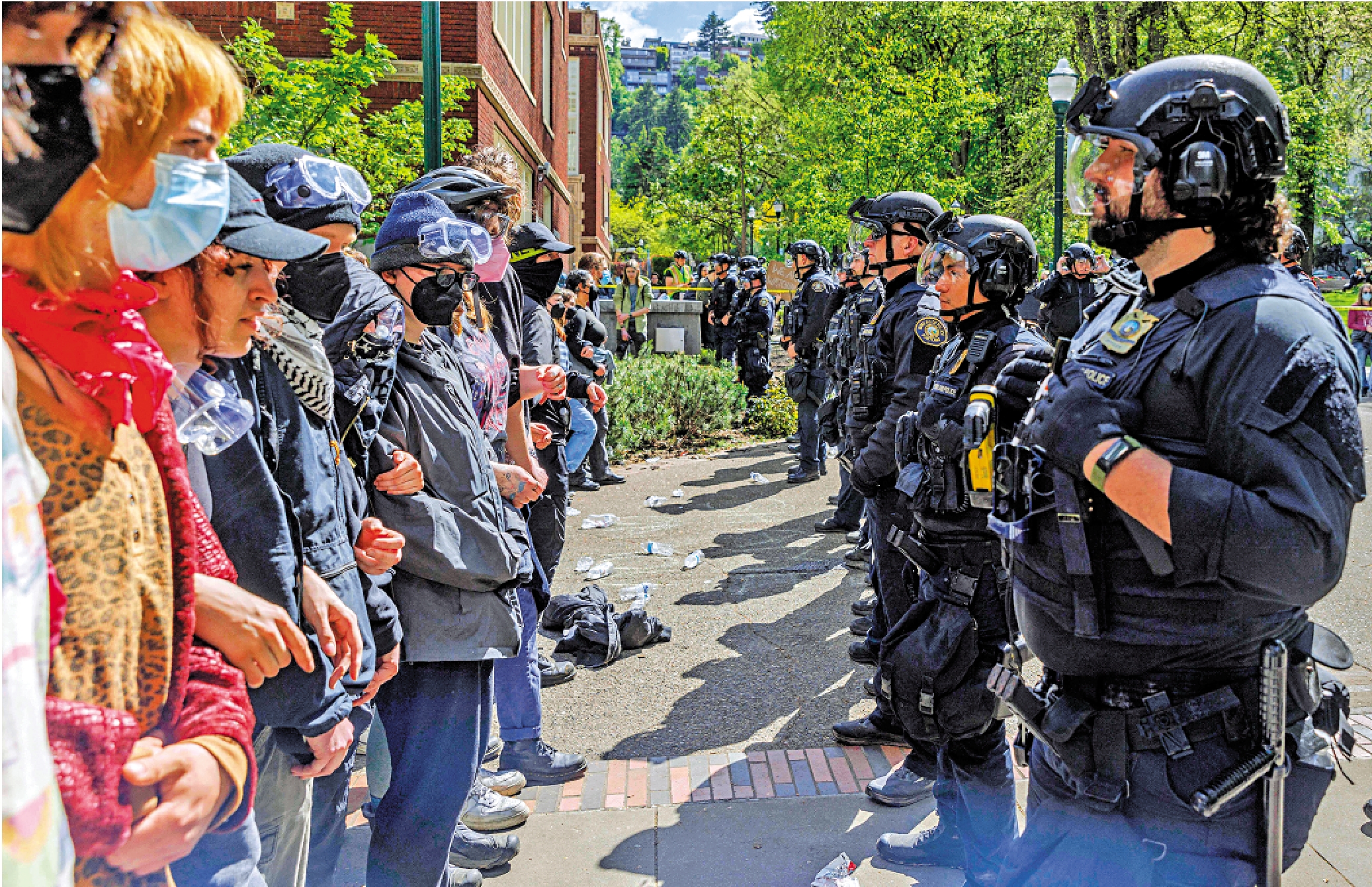 自4月18日警察進入哥倫比亞大學清場以來,美國至少25個州的40多所校園舉行反戰示威,超過2400人被捕。紐約警方於4月30日再次進入哥大清場,逮捕約300人。哥大校方要求警察至少在校園留守至5月17日,即畢業典禮後兩天。