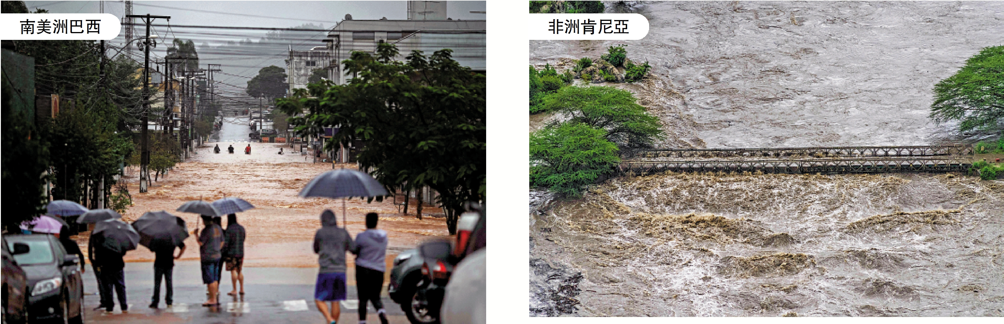 大公報綜合報道,全球暖化和厄爾尼諾現象雙重疊加之下,東南亞、中東、非洲和南美洲多地近日豪雨成災,東非地區洪災至今奪去至少400條人命,巴西南部暴雨80年一遇。與此同時,極端熱浪正席捲東南亞,緬甸、菲律賓、泰國和孟加拉,當地高溫破40℃。科學家指出,隨着全球暖化加劇,極端天氣事件更加頻繁發生,全球多地處於水深火熱之中,所造成的人員傷亡和經濟損失可能會再創新高。