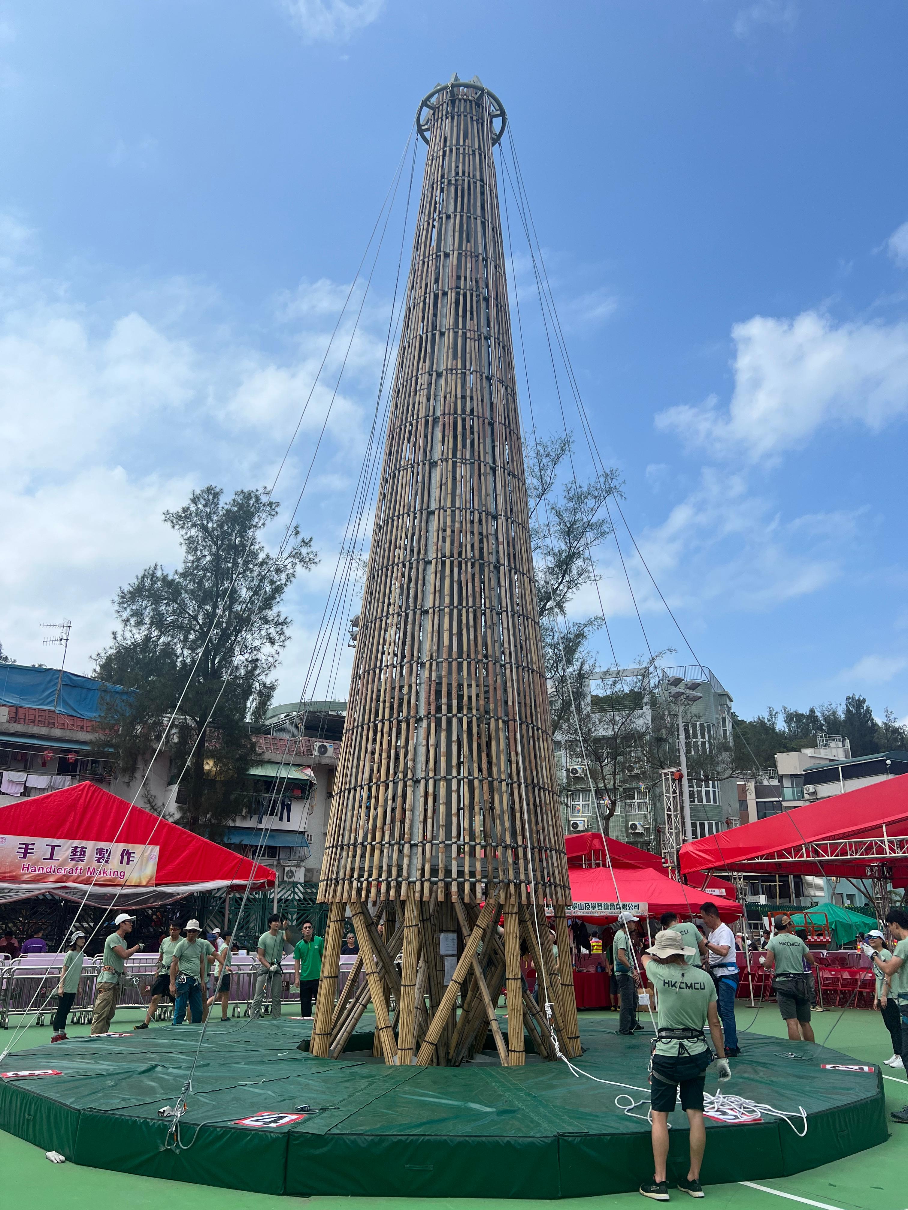 大公文匯全媒體報道,包山嘉年華2024重點活動「攀爬嘉年華」今日(5日)中午12時至下午6時,在長洲北帝廟遊樂場足球場舉行,所用的包山架高約14米。身高一米或以上的市民可以即場報名,體驗攀爬14米高的包山架。