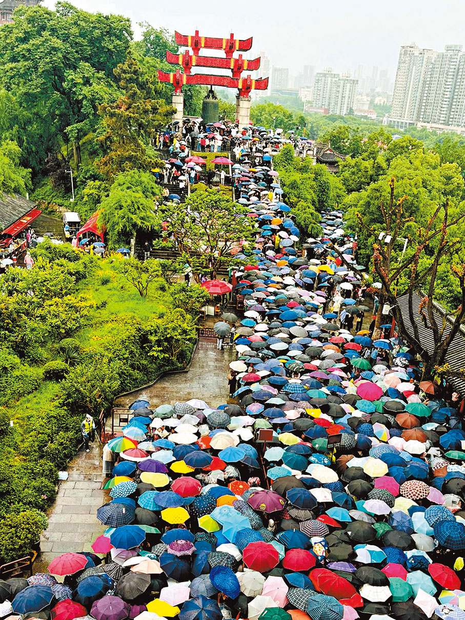 湖北多地陰雨綿綿,但卻沒有影響遊客出遊的熱情。在武漢「頂流」旅遊打卡地黃鶴樓、漢口江灘、東湖風景區和曇華林,遊客撐傘漫遊,景點人頭攢動。湖北省文旅廳的統計顯示,截至5月4日,湖北A級旅遊景區共接待遊客1,173.67萬人次,較2023年、2019年同比分別增長9.70%和30.31%。