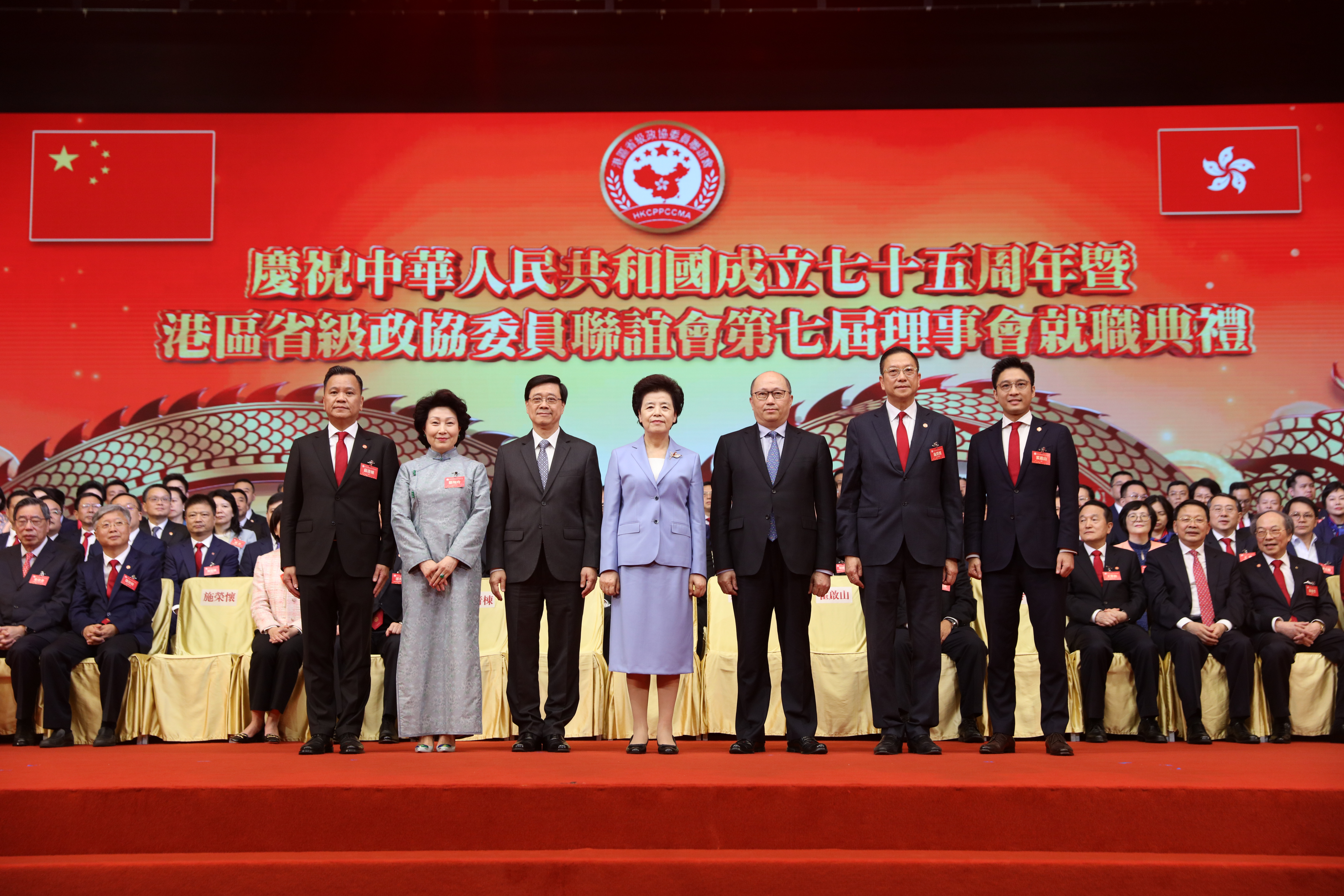 大公文匯全媒體報道,港區省級政協委員聯誼會今日(6日)在香港會議展覽中心舉行「慶祝中華人民共和國成立75周年暨港區省級政協委員聯誼會第七屆理事會就職典禮」。全國政協副主席咸輝,香港特區行政長官李家超,中央政府駐港聯絡辦主任鄭雁雄、副主任尹宗華,外交部駐港公署特派員崔建春,中央駐港國安公署副署長孫青野等出席。