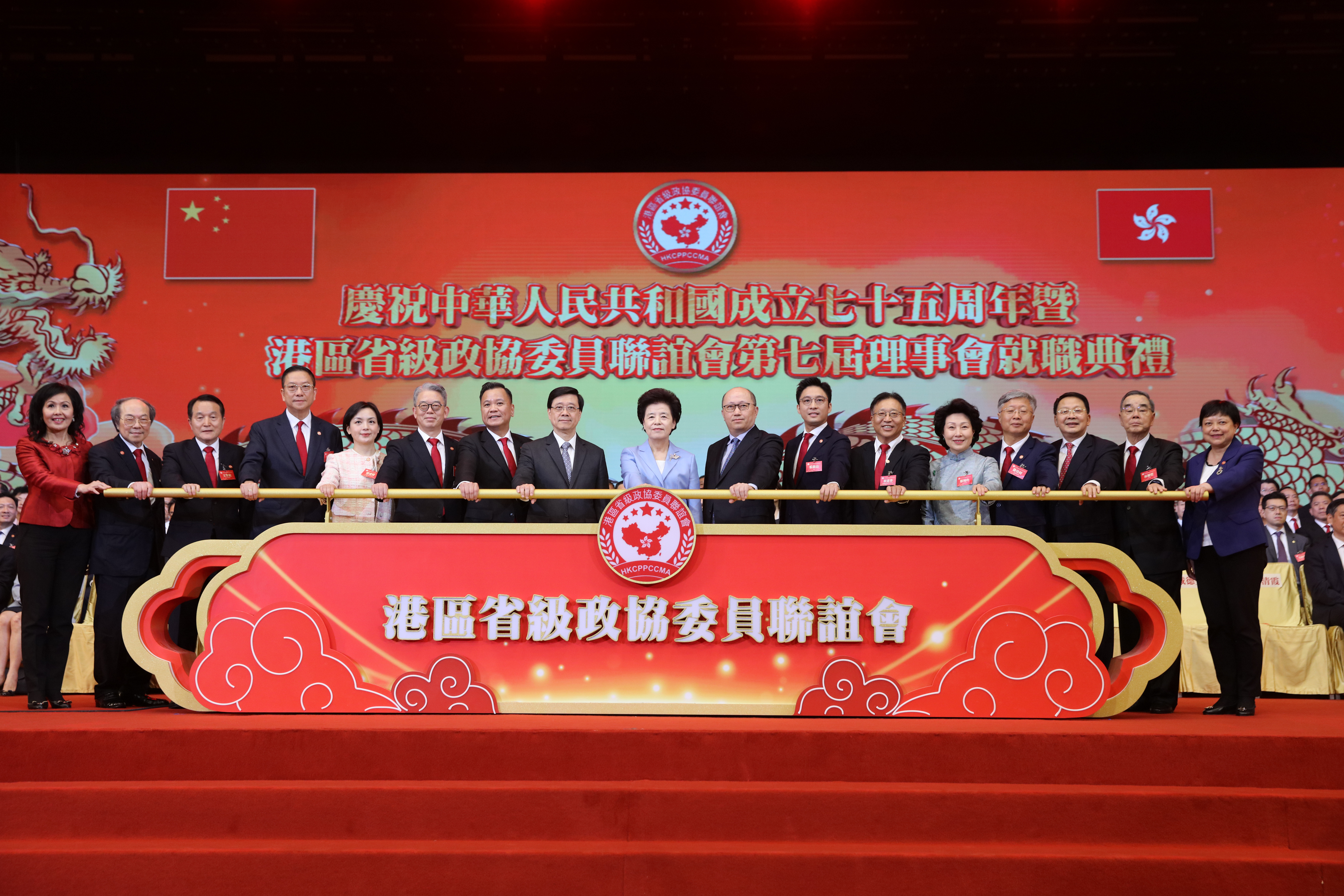 大公文匯全媒體報道,港區省級政協委員聯誼會今日(6日)在香港會議展覽中心舉行「慶祝中華人民共和國成立75周年暨港區省級政協委員聯誼會第七屆理事會就職典禮」。全國政協副主席咸輝,香港特區行政長官李家超,中央政府駐港聯絡辦主任鄭雁雄、副主任尹宗華,外交部駐港公署特派員崔建春,中央駐港國安公署副署長孫青野等出席。