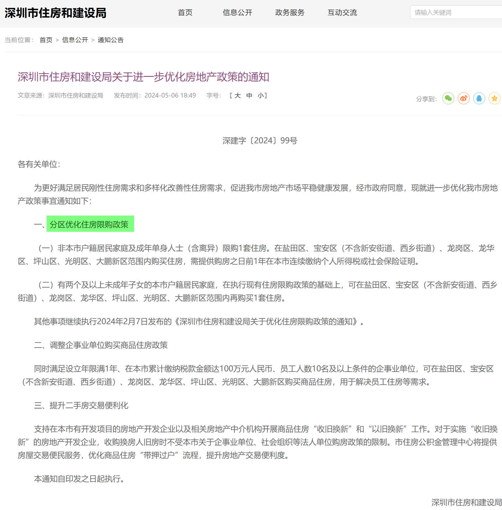 《通知》優化了在深工作人員以及多子女戶籍家庭在部分區域的住房限購政策,調整了符合條件的企事業單位在部分區域購買商品住房的政策,進一步提升房產交易的便利度,有利於更好滿足居民剛性住房需求和多樣化改善性住房需求,促進深圳市房地產市場平穩健康發展。