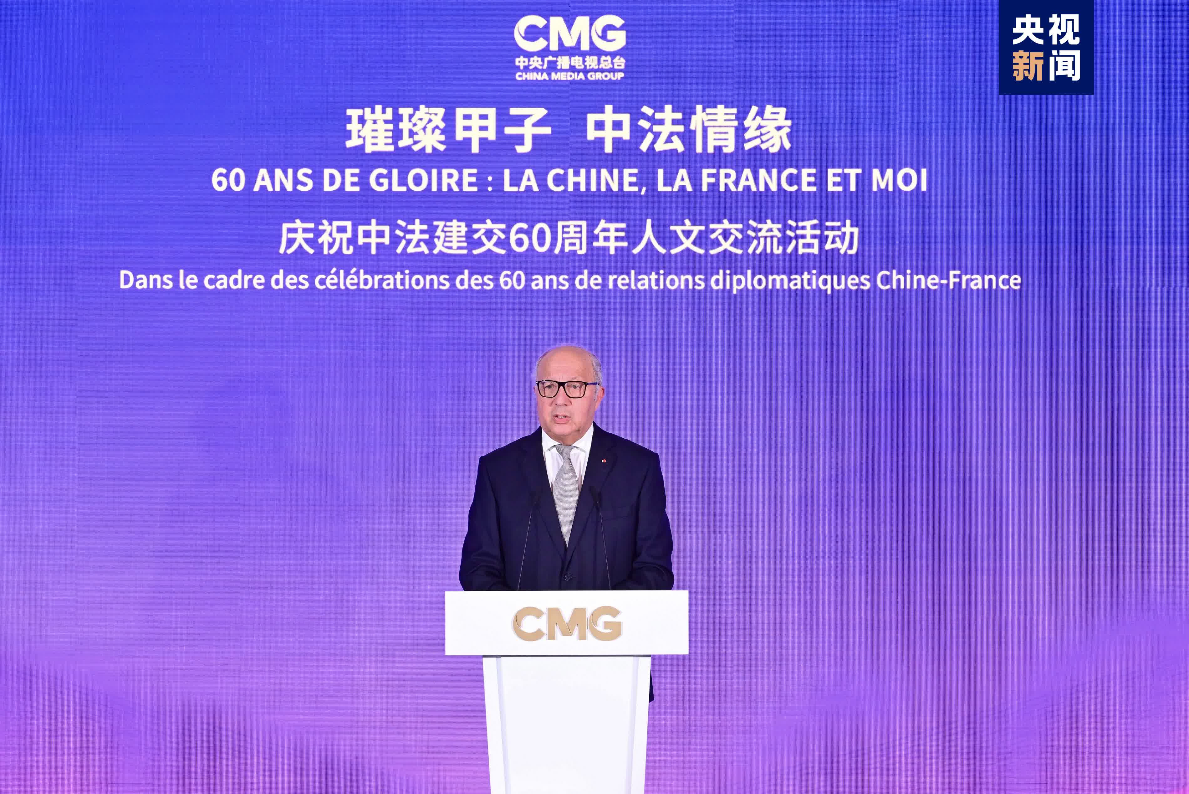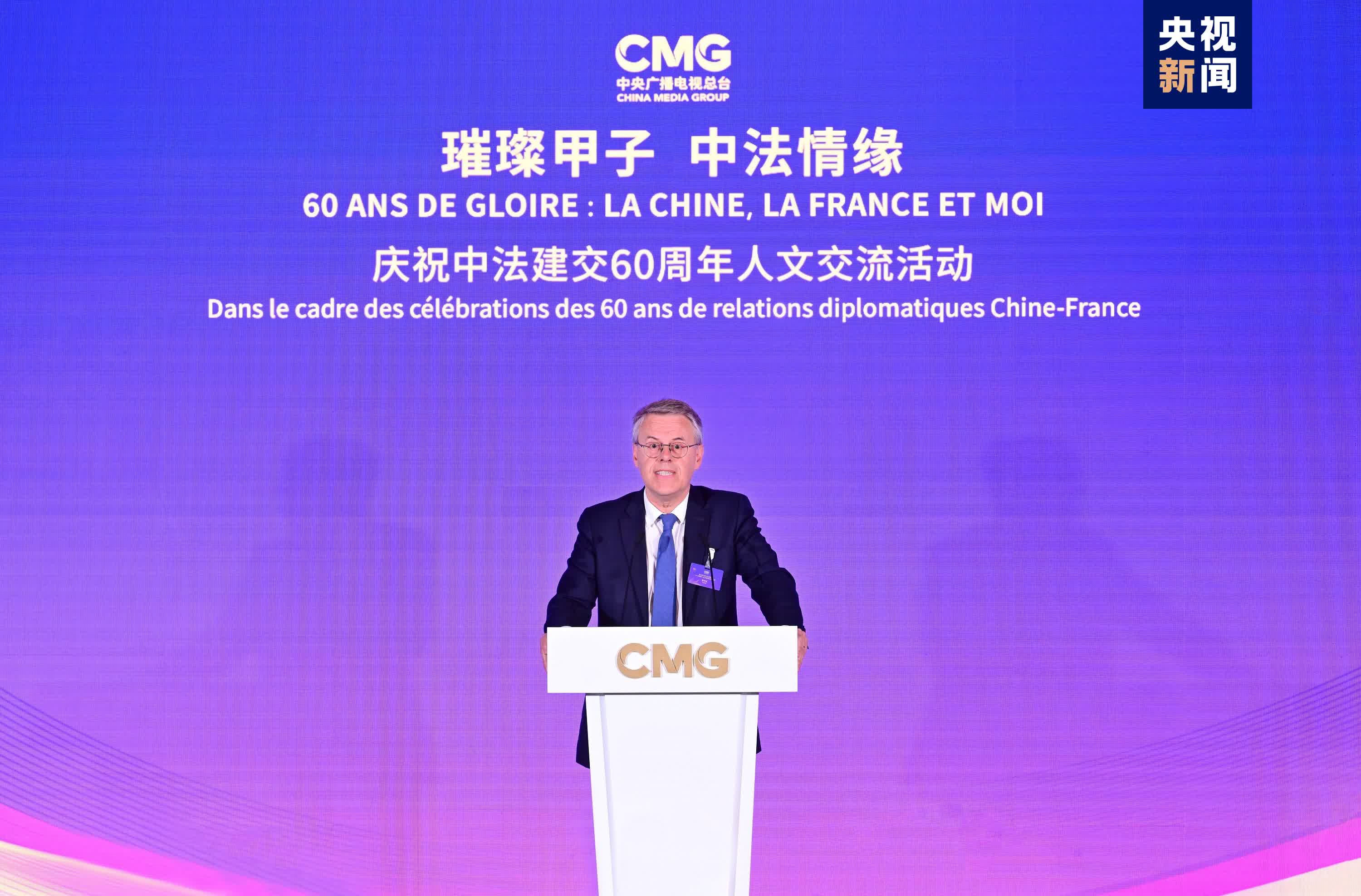 慎海雄說,中法建交60年來,兩國塑造了獨立自主、相互理解、高瞻遠矚、互利共贏的「中法精神」,已成為不同歷史背景、文化傳統和發展水平的國家之間友好合作的典範。在中法雙邊關係不斷發展的進程中,媒體作為人文交流的橋樑紐帶,發揮着促進民心相通、增進友好互信的作用。今年以來,中央廣播電視總台相繼推出《璀璨甲子 中法建交60周年高端對話》《超越時代的大智慧、大勇氣——走近戴高樂》等一系列中法合拍精品節目,發布「中國藝術推廣計劃」數字特展等融媒體產品,為兩國交流互鑒畫上濃墨重彩的一筆。總台還將派出超2000人的團隊轉播報道巴黎奧運會,借奧林匹克協同之力搭建起更加堅實的相知相識之橋。站在中法建交60周年的歷史節點,總台將以「思想+藝術+技術」的融合傳播,與法國朋友們再續中法攜手同行一甲子的友誼情緣。