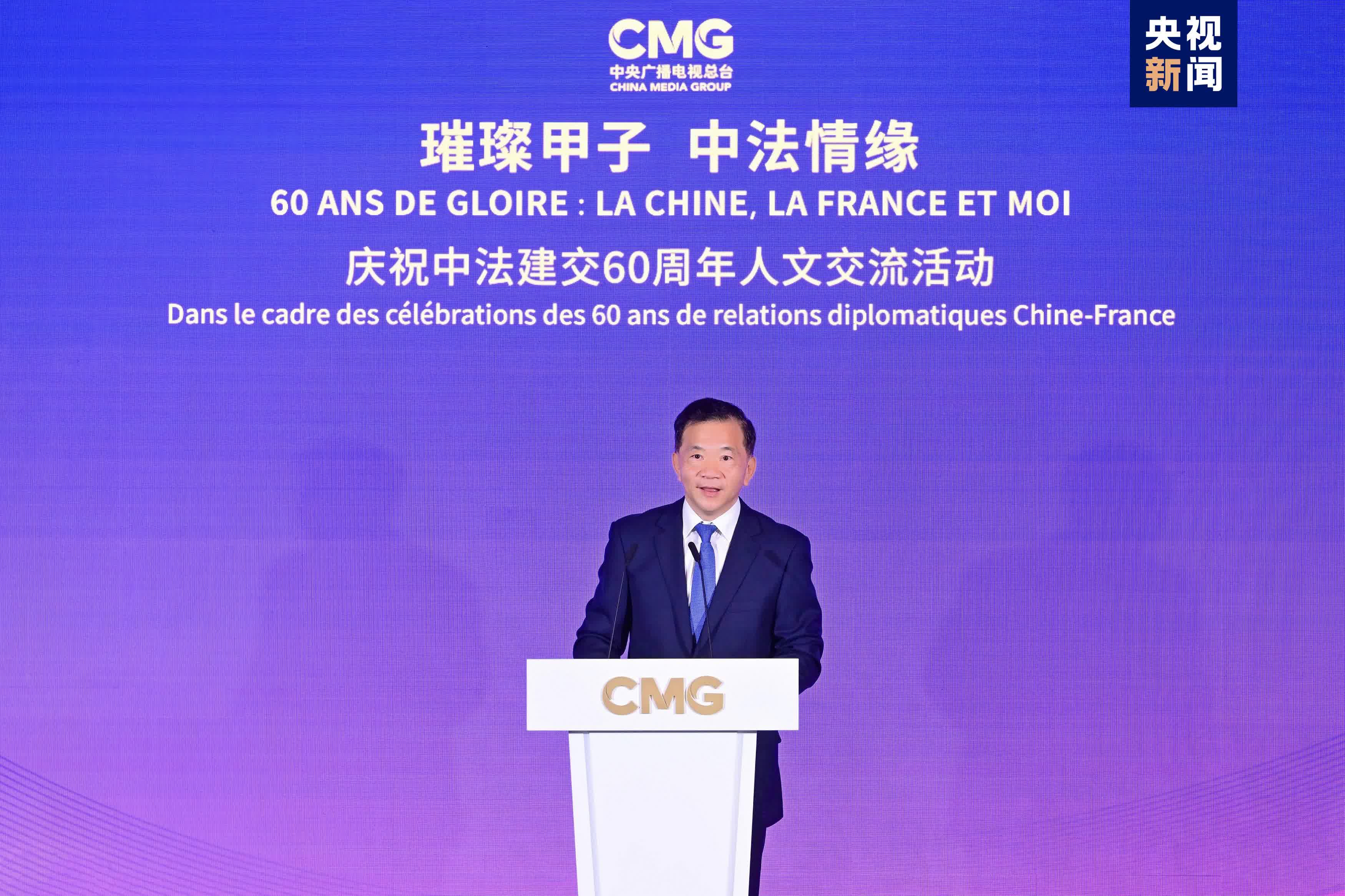 在中國國家主席習近平對法國進行國事訪問期間,當地時間5月6日,中國中央廣播電視總台在法國巴黎舉辦「璀璨甲子 中法情緣」——慶祝中法建交60周年人文交流活動,發布上線多部中法合拍影視精品和融媒體產品,並與歐洲新聞台簽署合作備忘錄。