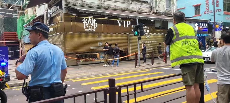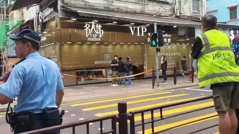大公文匯全媒體報道,尖沙咀海防道38至40號一間珠寶店今日(7日)遭遇劫案。中午近12時,有5名男子持利刀及手槍物體,闖入上址珠寶店內,企圖行劫,警方接報後趕至現場,當場拘捕5名疑犯,所幸珠寶店並無損失。警方正封鎖現場調查。