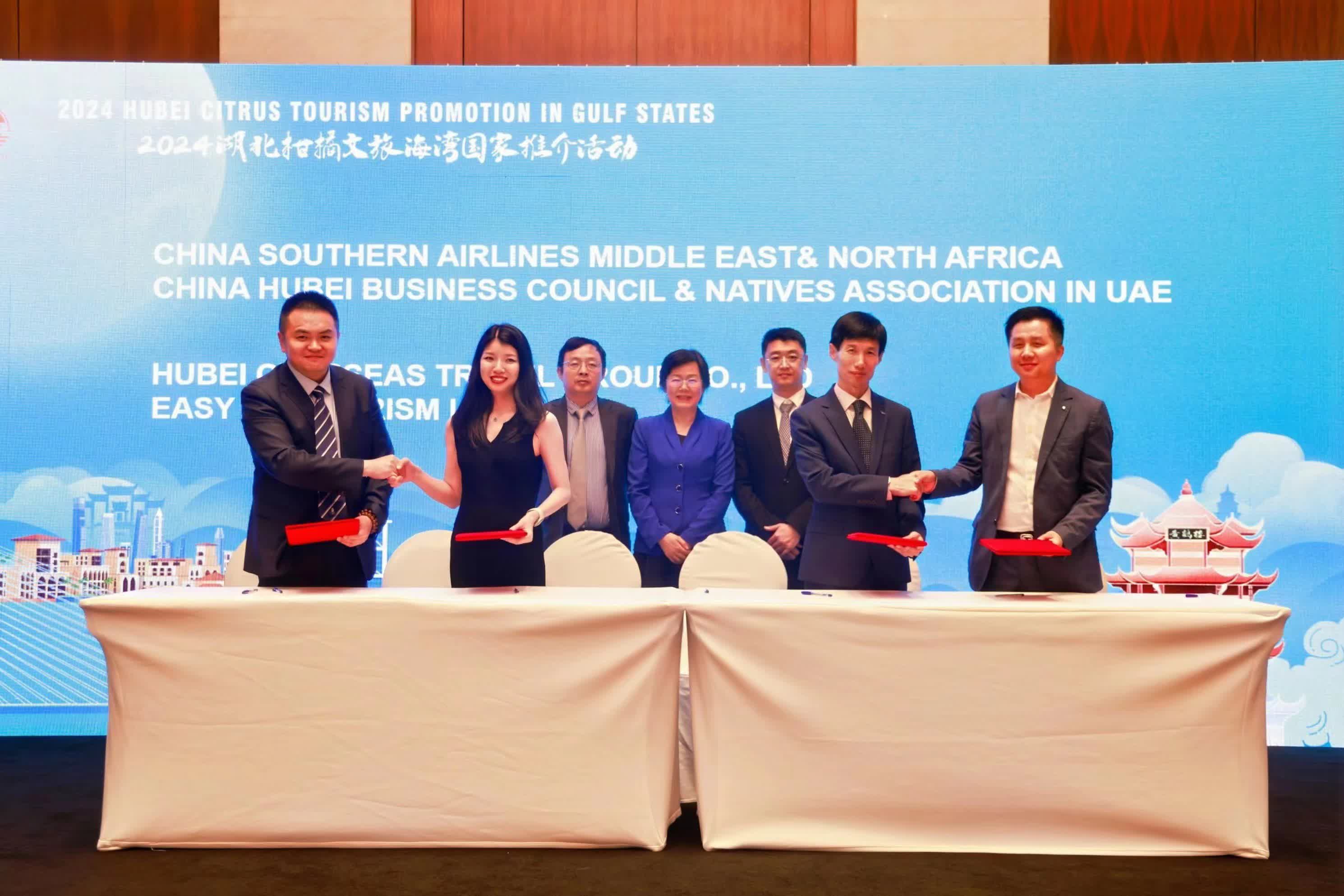 湖北海外旅遊集團、中國南方航空分別與EASY GO TOURISM L.L.C和阿聯酋湖北商會暨同鄉會就加強商貿和文旅領域合作簽訂戰略合作協議。