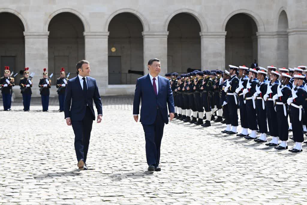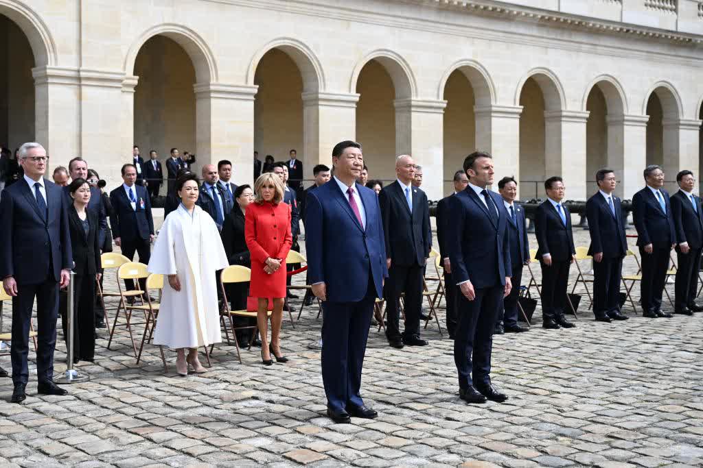 當天下午,習近平在巴黎出席馬克龍舉行的隆重盛大歡迎儀式。兩國元首檢閱法蘭西共和國衛隊和陸海空三軍儀仗隊,並觀看分列式。